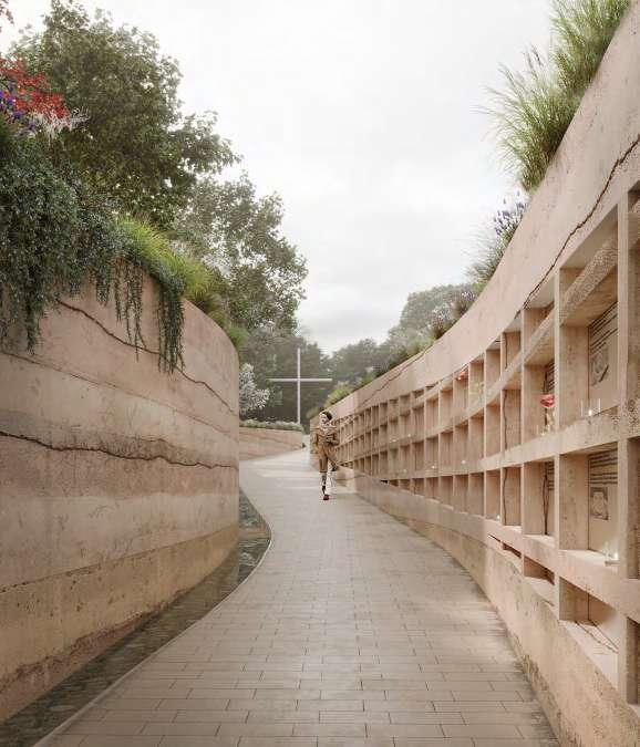 Columbarium with a stream