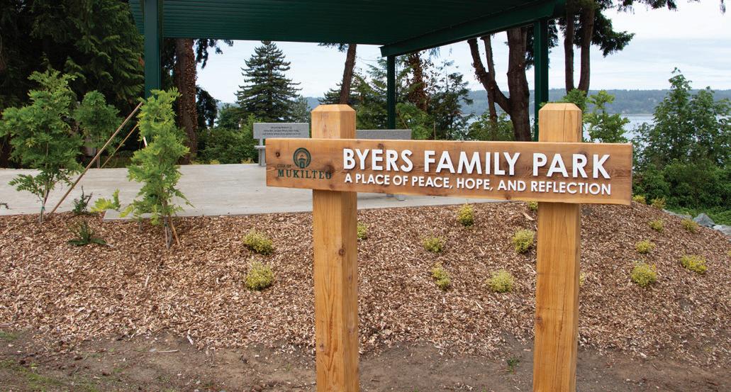 Byers Family Park, located at 604 4th Street, is Mukilteo’s newest park. This 1/3 acre park features a contoured plaza, an arbor, bicycle repair station, and 3 benches. lt features beautiful views of the sound and Lighthouse Park. Byers Family Park, a place of peace, hope and reflection. Come visit the newly installed features.