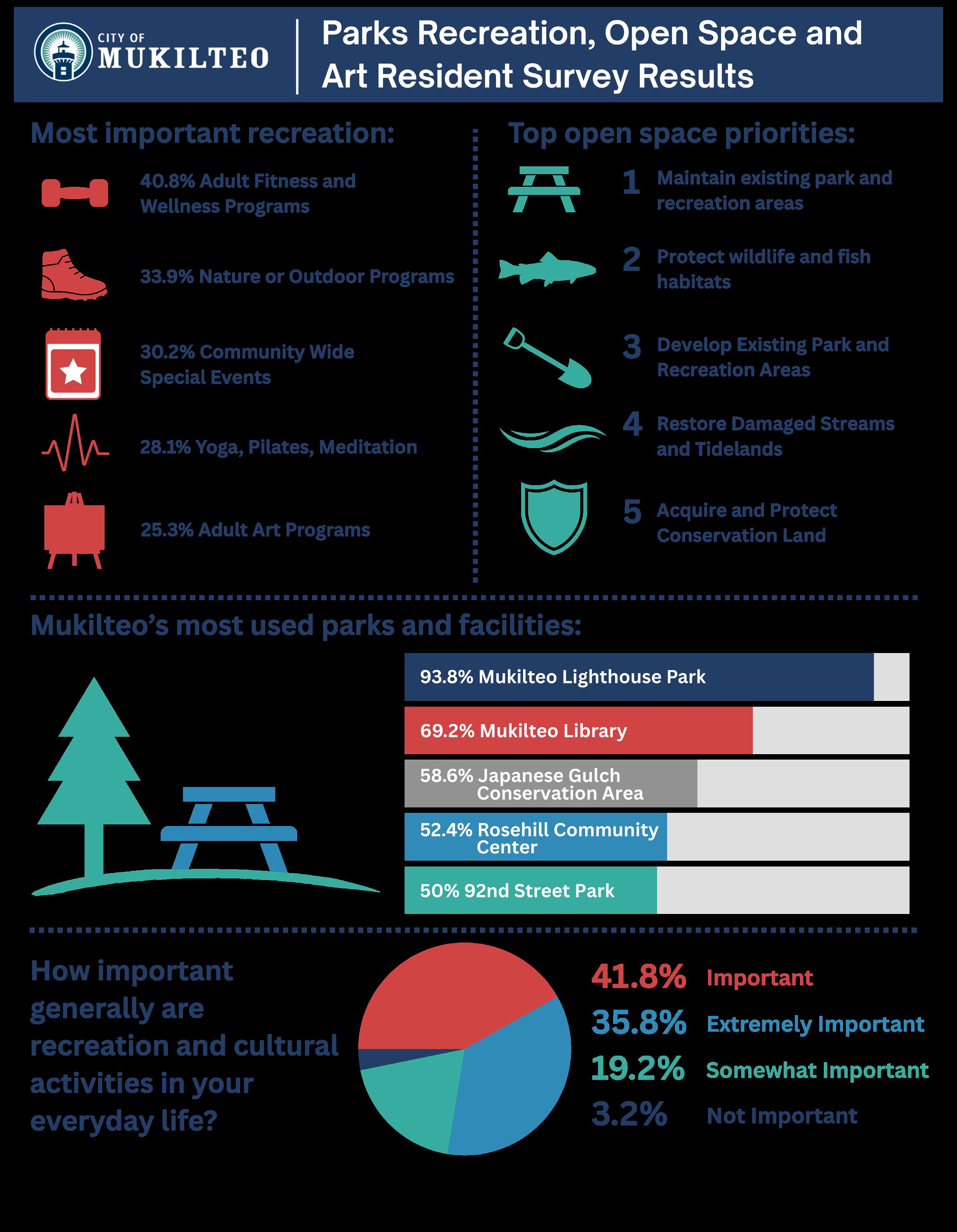 The Parks and Arts Commission is dedicated to fostering a healthy and vibrant community for the enhancement and effective management of arts, parks, and recreational facilities. Parks and Arts Commission meetings are held on the first Thursday of each month at 6:00pm in the Council Chambers at City Hall, 11930 Cyrus Way, Mukilteo, WA. For more information go to mukilteowa.gov and search Parks and Arts Commission.