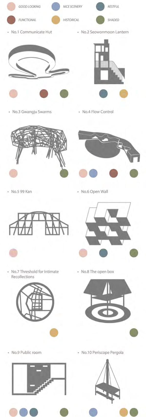 Respecting the original intention of Gwanju Folly, we avoided imposing rigid functions on the follies. Yet, we wanted to add elements that can stimulate people's imagination to encourage them to find their own ways to use the follies. To do this, we chose to use something we all are most familiar with as our inspiration: everyday items. With this reshaping process, follies will get placeness, link to the site, or even become more "functional."