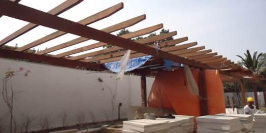 An effort was made to give it a contemporary look through design. A series of wooden portals at the entry neck made a transition to the open spaces inside.