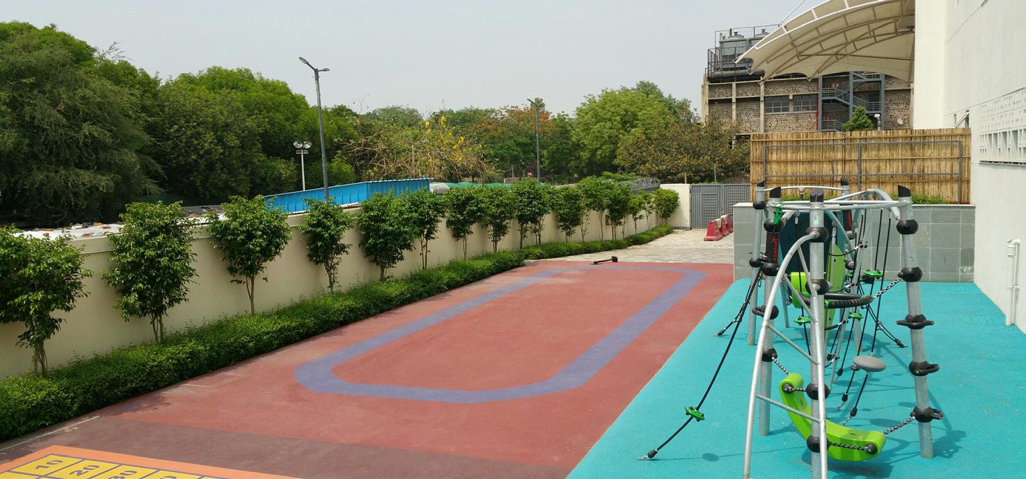 The design evolved by understanding the need for “free play” time for children of various age groups. The limited available open spaces are designed in various play zones based on age and need. The unique play equipment was identified and installed in pockets of open areas. The accessibility to these areas is achieved through ramps. The entire surface of the play zone was finished in EPDM and designed for fire tender load.