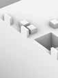 The central courtyard with playful steps,is inspired by the stepped wells of India and provides an area for student interaction. Bold paving patterns adorn the space.