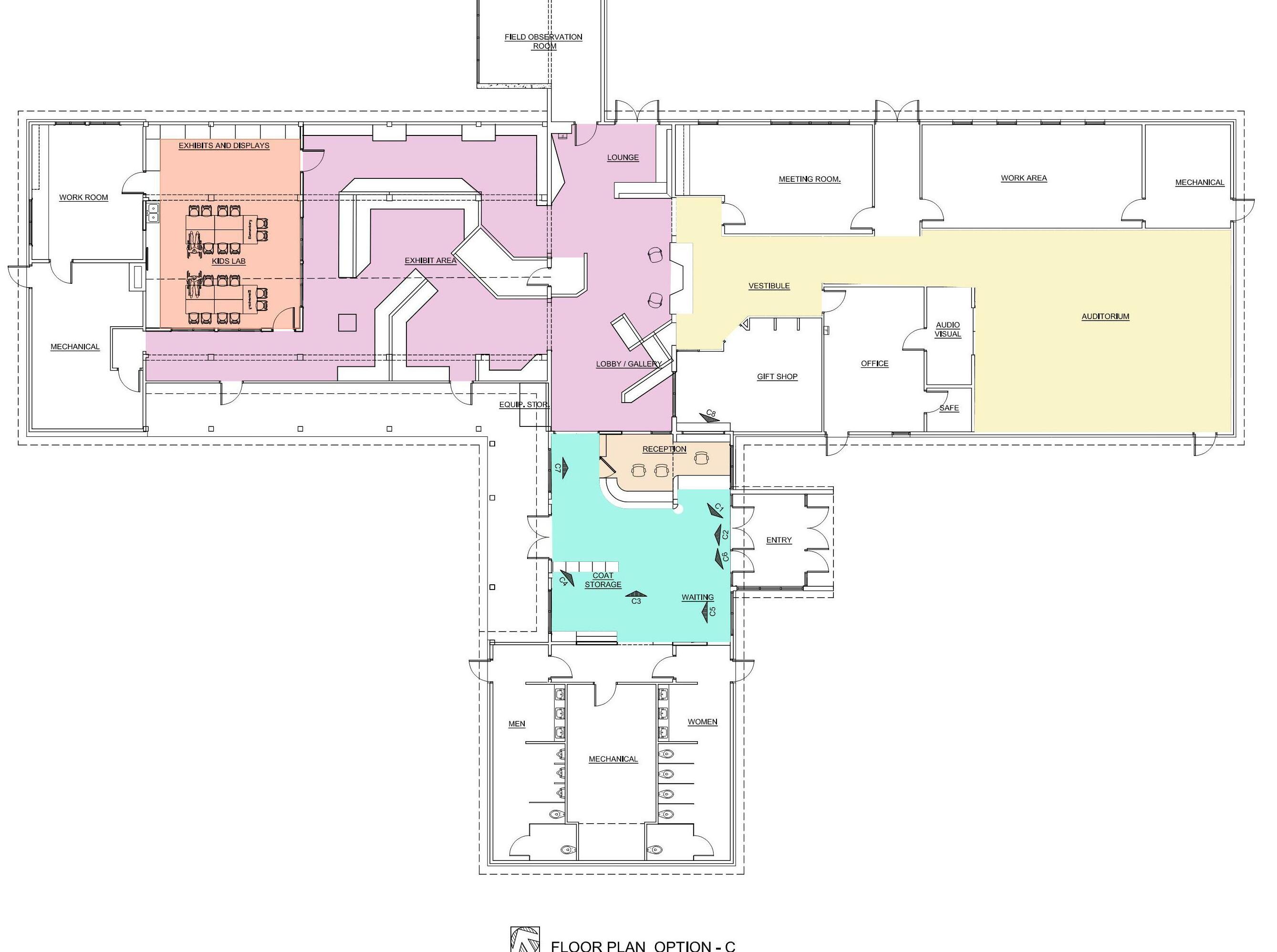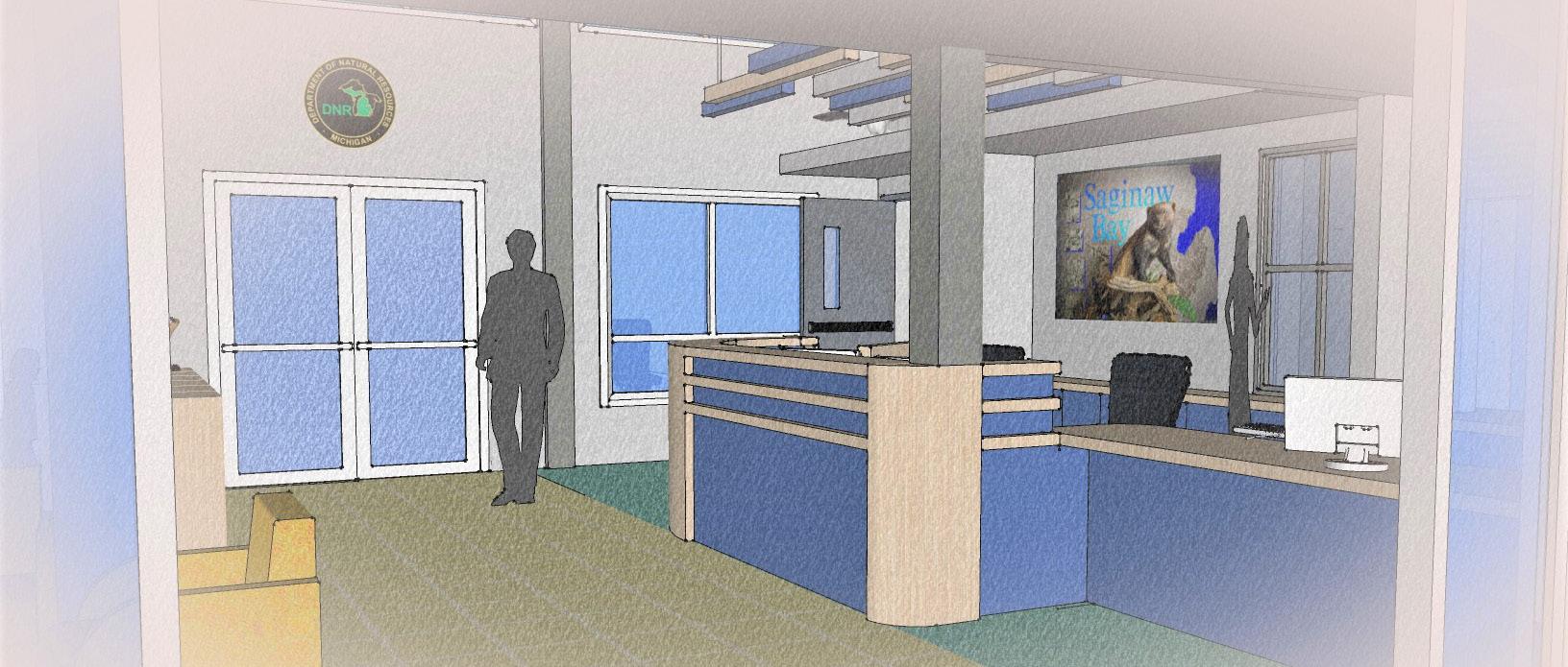 Located on a picturesque edge of the Saginaw Bay, this project is a museum and visitors’ center that provides a hands-on learning experience for numerous local schools, with topics related to the flora and fauna of the region. The project scope involves the renovation and redesign of the reception area and the lab classrooms, to accommodate multiple groups of children and provide better circulation through the museum gallery. A modern material palette and color theme is planned. Emphasis is also given to area allocation for various hands-on activities as well as storage.