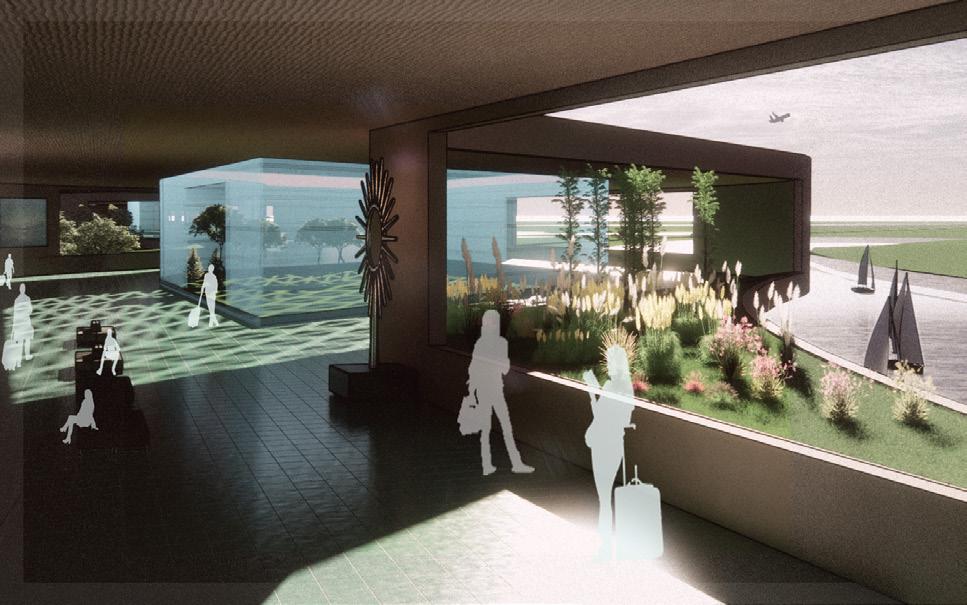 Harnessing a riverine airport site staraddling Nebraska and Iowa, this new terminal is designed as a part of the Airport design studi. The design keeps the safety, comfort, technology and ecology on the forefront. The design takes advantage of the site features and showcases the ecology of Praries and promotes Eco tourism through its experential spaces.