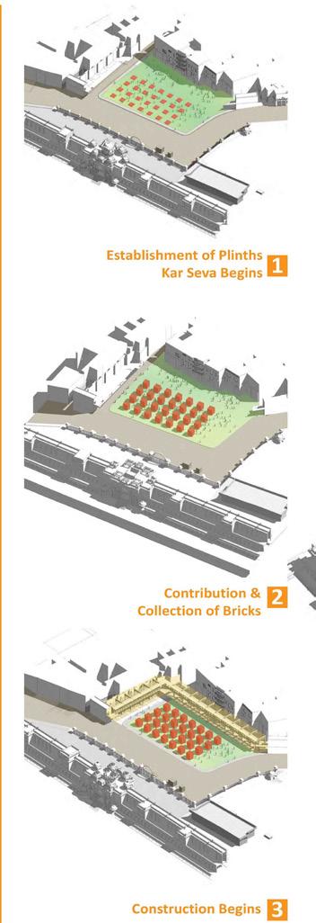“Kar-Sewa” is the concept of volunteering free labor. The idea was to get the construction of the plaza through the efforts of the devotees. Hence the design was modular in nature and could be constructed over a period of time.
