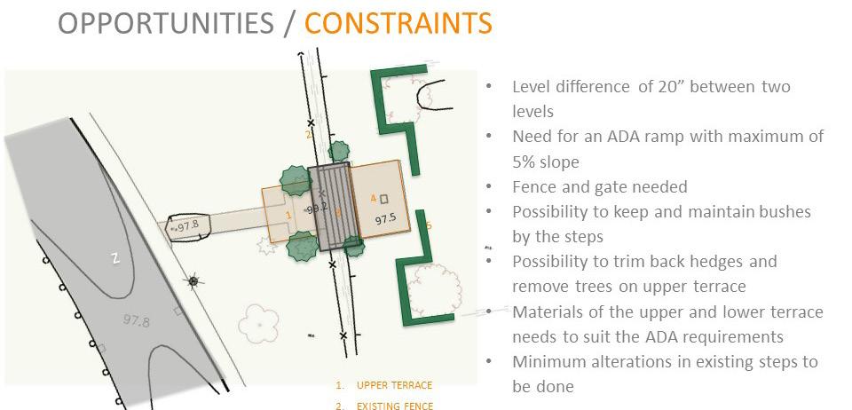 The project involved the redesign and enhancement of the access to Belle Isle Conservatory garden which has a historical value. It meant restoring existing steps, providing a wider and welcoming entry through the garden gates with accessible walkways, a larger terrace at the top and bottom of steps, and some seating.