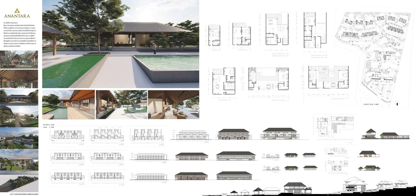 ANANTARA RESORTANDSPA เเนวคดในการออกแบบ คอการเคารพธรรมชาตเเละสงเเวดลอมเปนรสอรททใหความร สกเเลบรรยากาศแบบเขตรอน การออกแบบวลลามการ ออกแบบเพอสะทอนใหเหนถงหมบานพนถนเเบบบดงเดมหอง พกจะถกแบงเเยกเปนโซนเเละถกลอมรอบไปดวยพนทสเขยวท กวางขวาง มพนทกลางเเจงสาหรบกจกรรมสาธารณะอย เเละ ไดมการใชวสดทหยาบเเละเปนธรรม ทงสงอานวยความสะดวก เพอตอ เขตรอนเเละตดดน