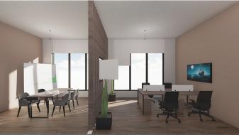 1.ออกแบบพนทสวนกลาง ใหเปนพนท เปดโลง เพอใหสามารถทางานรวมกนได โดยมทงหองประชมแบบสวนตว เเละหอง ประชมเเบบทวไปทสามารถมองเหน ถงการทางานรวมกนไดโยยไมปดกน พนทมากเกนไป 2.การสรางพนททสามารถเปนศนยกลาง ของการทางานเเละพนทพกผอนไปดวย AYDA CO-OFFICE SKETCH DESIGN : 1/2022
