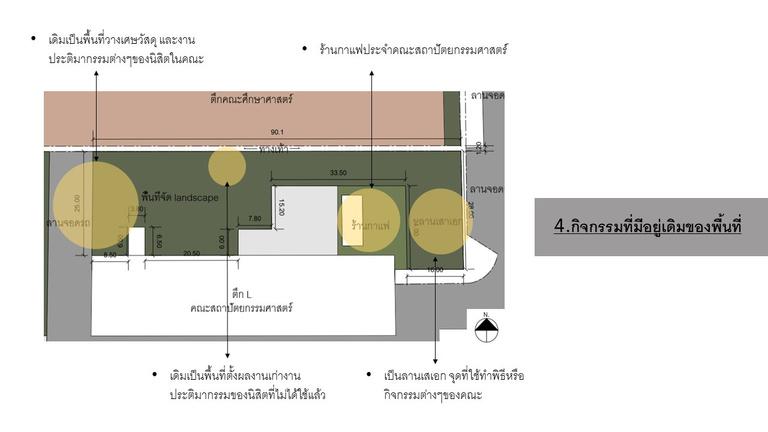 GROUP WORK : 1/2021 เปนการออกแบบพนทวางบรเวณขางตก คณะสถาปตยกรรมศาสตร ศลปะเเละการออกแบบ โดยเเนวคดในการออกแบบ จะเปนการ ออกแบบพนททสามารถเขาถงไดทกคน ไมจาเปน ตองเปนบคคลภายในคณะสถาปตย โดยจะมการทา จนงพกผอน หรอไวทางาน workshop ตางๆได รวมทงการเเทรกพนทสเขยวเขาไปในพนท เพอเพม ความรสกใหนาใชงานมากยงขน ARCH GARDEN DESIGN