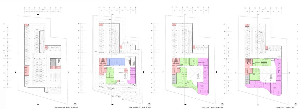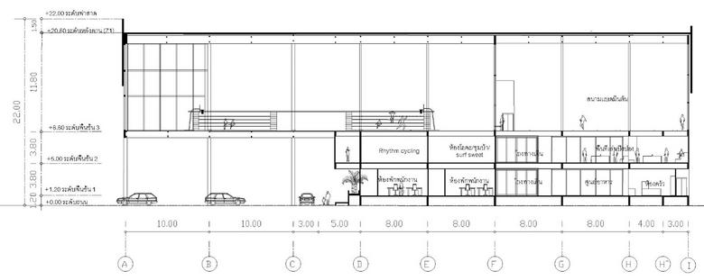 SPORTCENTER PHITSANULOK CONCEPT “แบงแยกแตเขาหากน”(Separated but Connected) คอแนวคดในการออกแบบศนยกฬาแหงน เนองจากมประเภทของกจกรรมท หลายหลายและลกษณะการใชงานทตางการ จงไดนาแนวคดนนมาใชในการ จดวางหองตางๆ มความสมพนธกนและเขาถงการไดงายแมวาฟงกชนนนไม ไดอยดวยกนเพอใหผใชงานสามารถใชไดหลายหลายเพศหลายวย แนวคดน สงผลใหเกดการจดการกบรปทรงอาคารโดยจะเนนไปทชองแสงทมมากเพอ รบแสงธรรมชาตและมการแทรกพนทสเขยวเขาไปแตเป นการแทรกทไมได แทรกเขาไปในตวอาคาร แตใหความรบรสกถงธรรมชาตพนทสเขยว ถงแมจะ อยบนอาคารกตาม แตยงสามารถรบรไดถงธรรมชาตจากภายนอก เพอชวย ใหผใชงานไดผอนคลาย และสามารถออกกาลงกายไดอยางมประสทธภาพ GROUND FLOOR PLAN SECOND FLOOR PLAN TH RD FLOOR PLAN SECTION