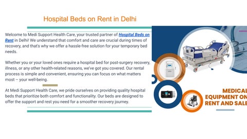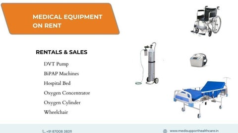 We are supplier and dealer of medical equipment in Delhi, and prodding Hospital Beds, Rent Oxygen Concentrator, Wheelchair on Rent, Bipap Machine, Oxygen Cylinder, DVT Pump.