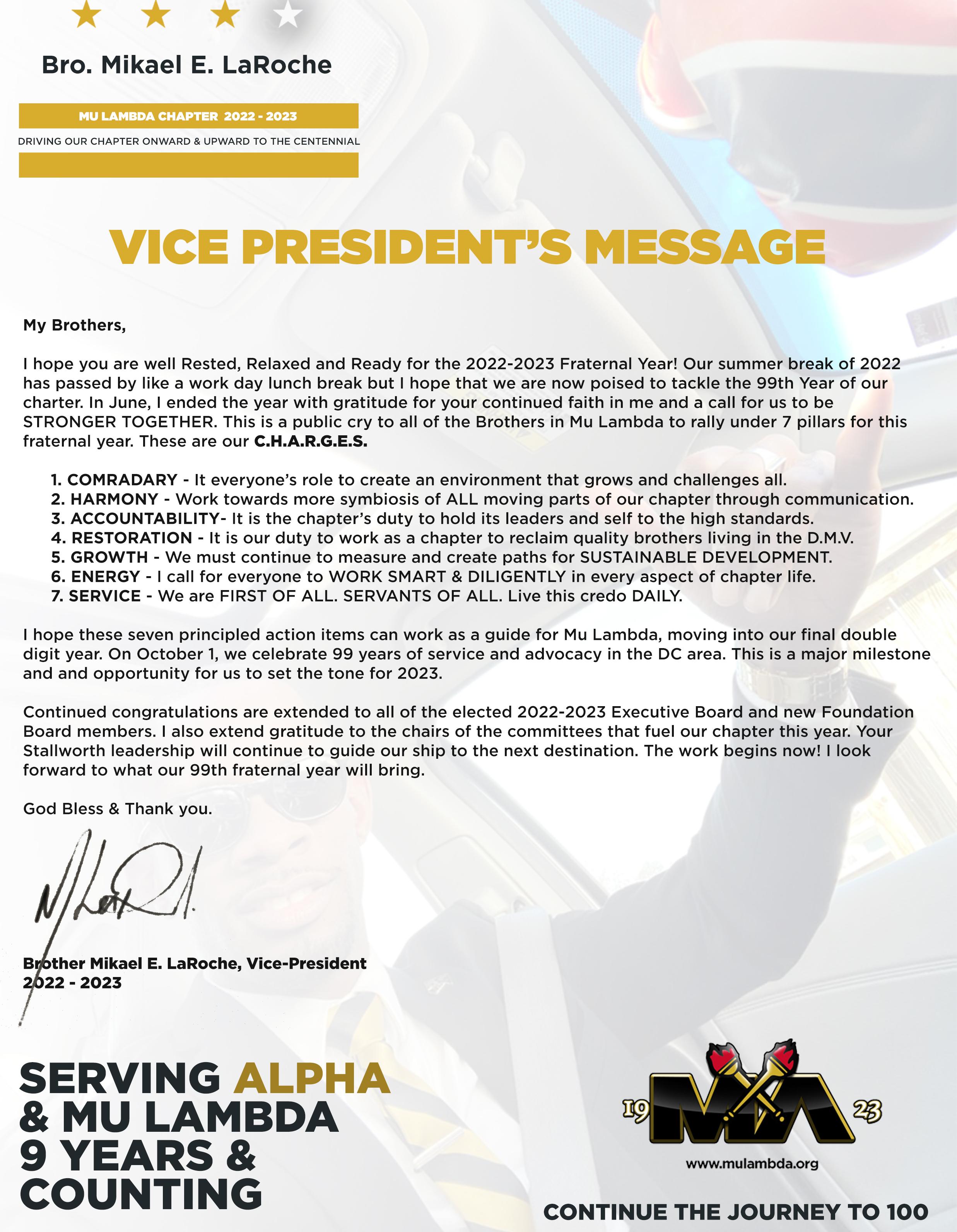 Contact us at torch@mulambda.org MU LAMBDA TORCH 2022 | 36 ALPHA PHI ALPHA FRATERNITY, INC, MU LAMBDA CHAPTER