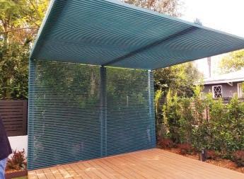 For more privacy, our Hi-Tech 45 aluminum series is designed with horizontal elements that are placed at a downward 45 degree angle, allowing for airflow but bringing greater privacy.