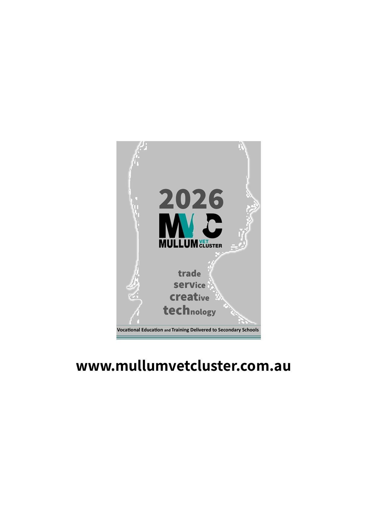 • All Mullum VET Cluster programs in this Handbook are offered in good faith. The Programs will be subject to confirmation of Government and other funding which at this stage is unknown. All Cluster Members, including schools, reserve the right to review, cancel or relocate any VET programs listed in this Handbook.