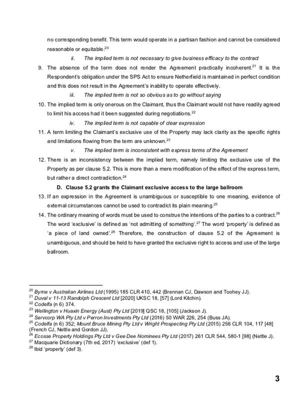 reading the question so that I could listen to it whilst driving or walking. I also found it beneficial to plan exactly what parts of the moot I would work on each day (for example, instead of writing 'work on the written submissions' on your to-do list, you would instead say something like 'finish submission 3 of Claim 1') By being specific in my daily goals, I procrastinated less as I had a defined outcome to meet and was able to chip away at the moot incrementally.