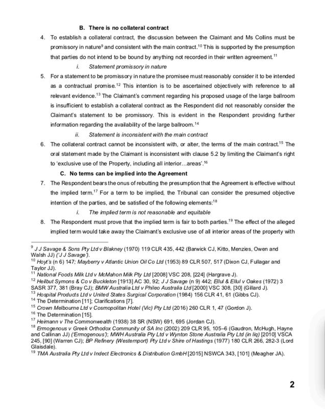 Three other things that are important are, first, to really read the facts very, very carefully, and, secondly, to know the facts of cases that you cite Cases get distinguished on the facts, so you should know those and not just the legal rule coming out of a case Thirdly, make sure that your submissions are coherent, especially if there is a senior and junior counsel (this is also a key task for the instructing solicitors, if there are any). Sometimes counsel have just prepared their own documents without regard to those of the other counsel and they end up essentially arguing against each other! Collaboration really is the keyword here