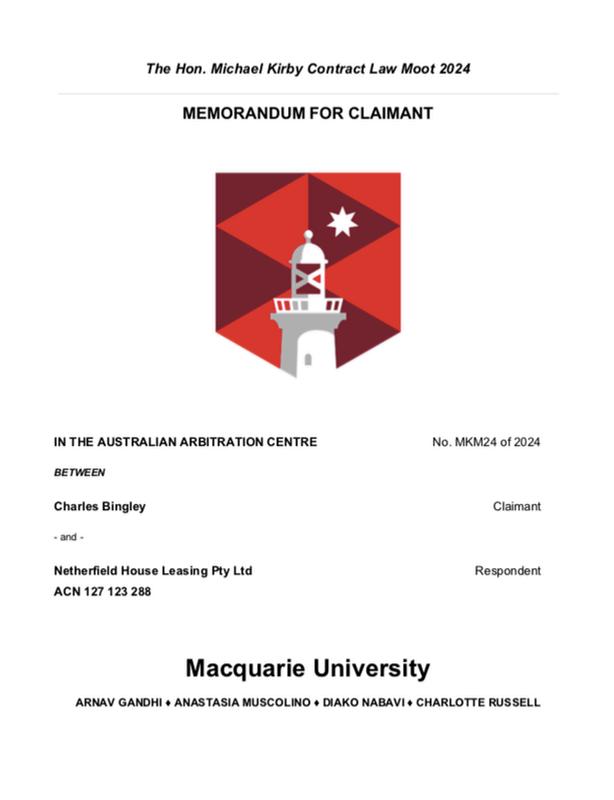 I find that these two moots are great opportunities to explore very prominent areas of the law and is a great opportunity to expose yourself to either a criminal facts scenario or a contractual dispute and apply your knowledge to create compelling arguments for both the appellant and respondent These two moots challenge you to explore all perspectives of a set of facts, ensuring that you consider all points of law from both perspectives and allows you to practice your written skills in constructing a detailed and concise written submission and advocate your submissions confidently I hope you all find satisfaction exploring the facts, applying the law and advocating for your clients in a professional and proficient manner