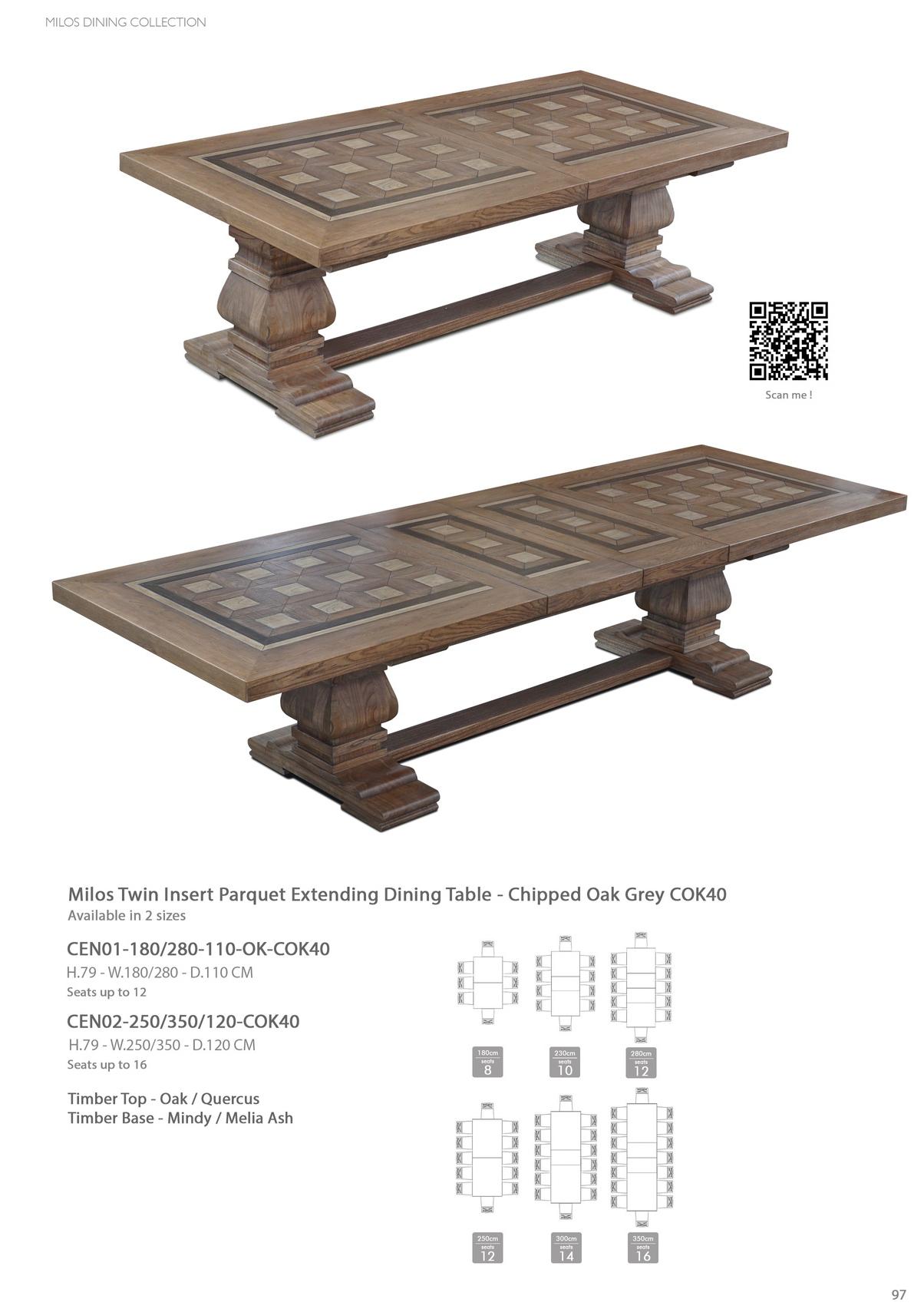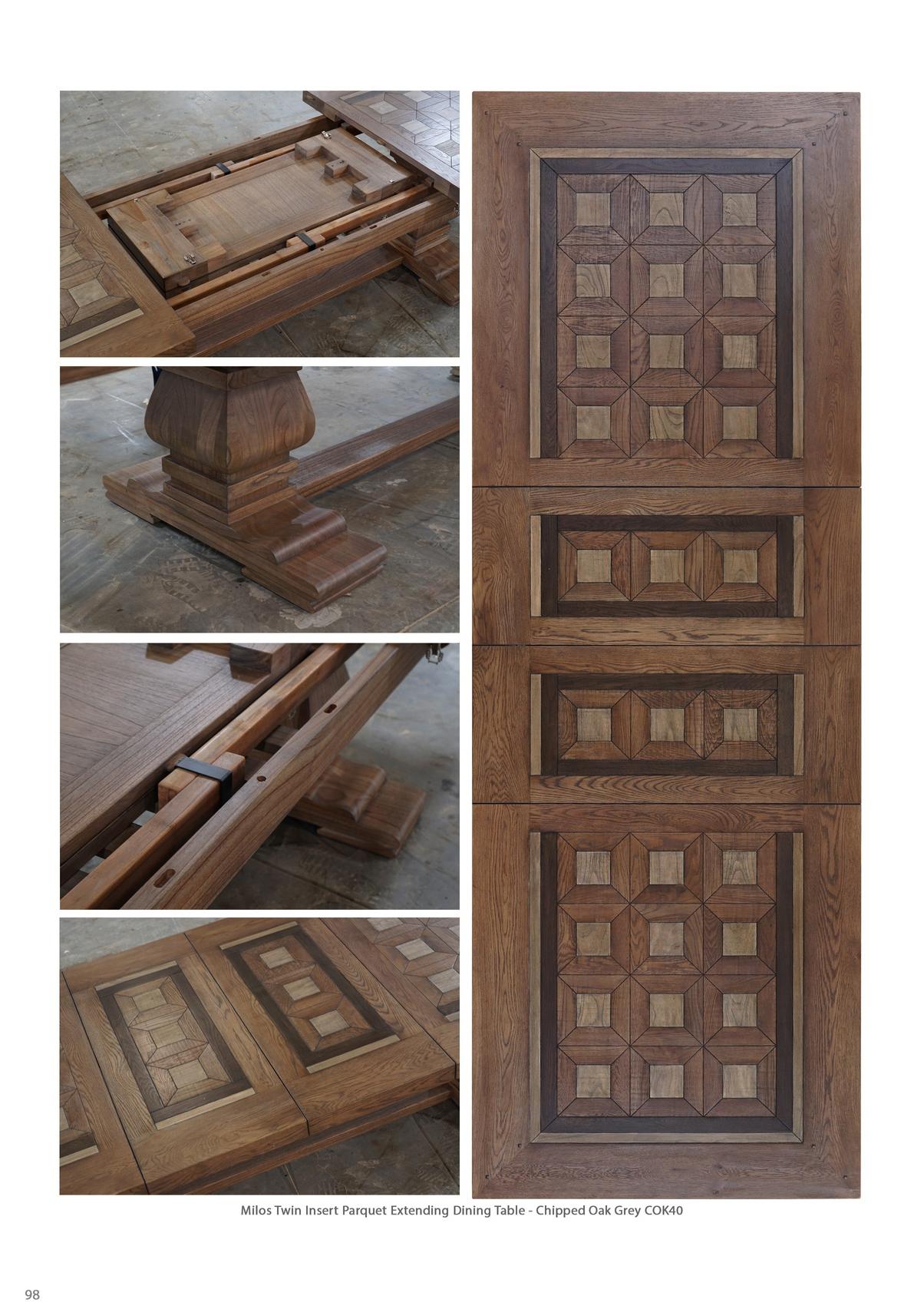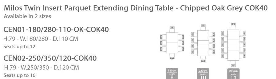 Milos Twin Insert Parquet Extending Dining Table - Chipped Oak Grey COK40