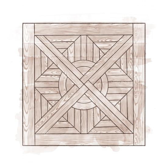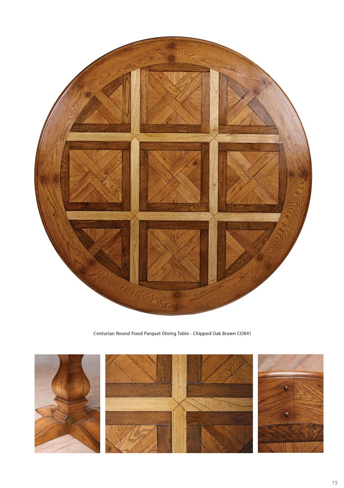 Centurian Round Fixed Parquet Dining Table - Chipped Oak Brown COK41
