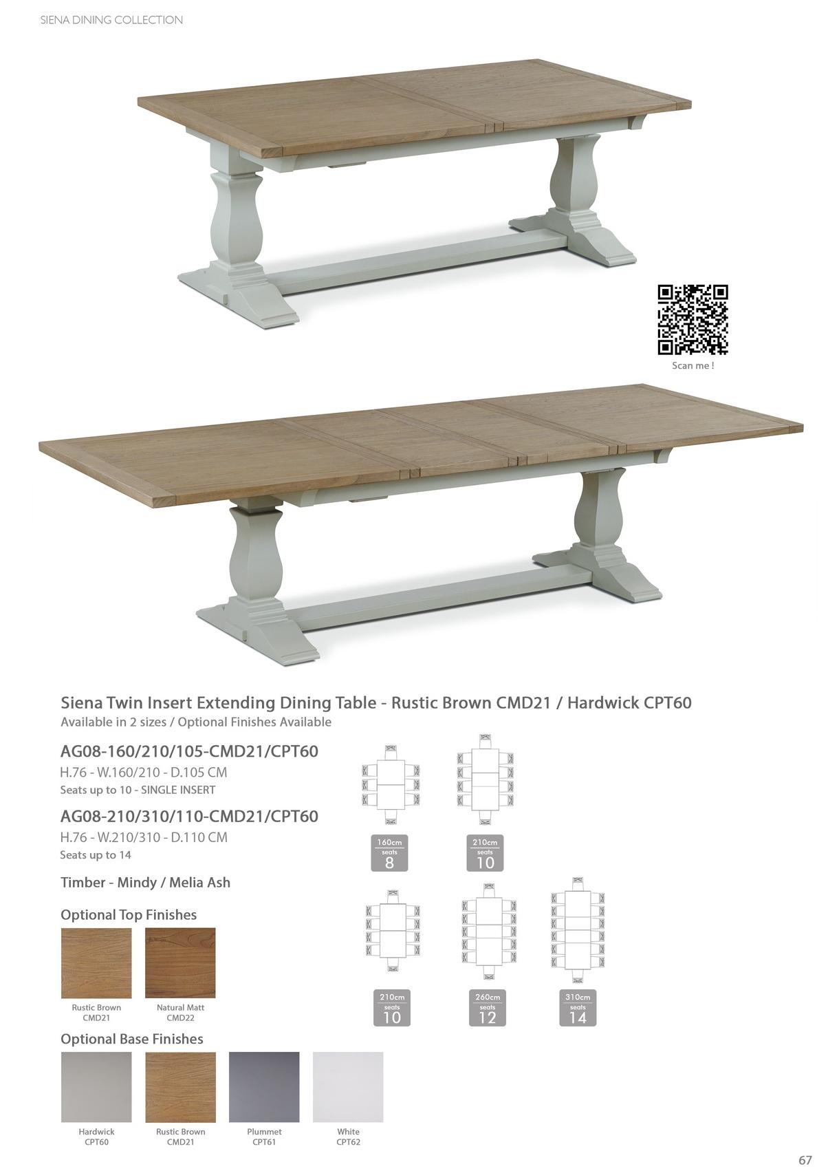Siena Twin Insert Extending Dining Table - Rustic Brown CMD21 / Hardwick CPT60
