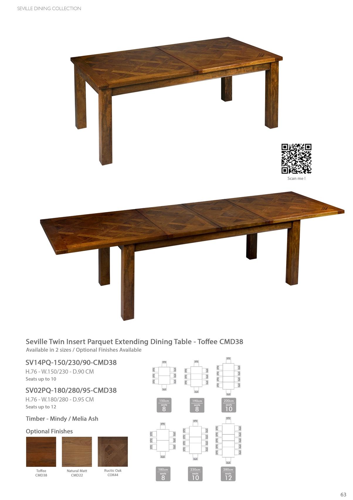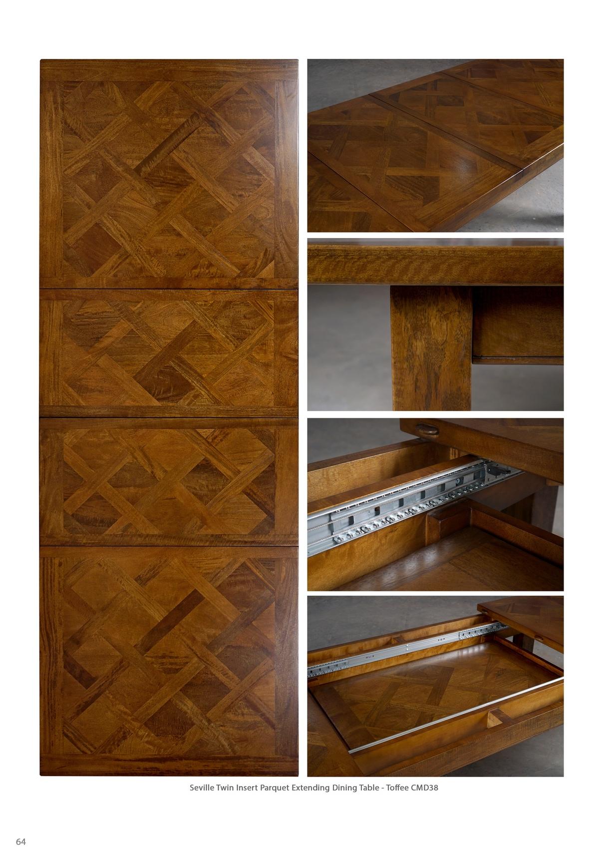 Seville Twin Insert Parquet Extending Dining Table - Toffee CMD38 Available in 2 Sizes / Optional Finishes Available