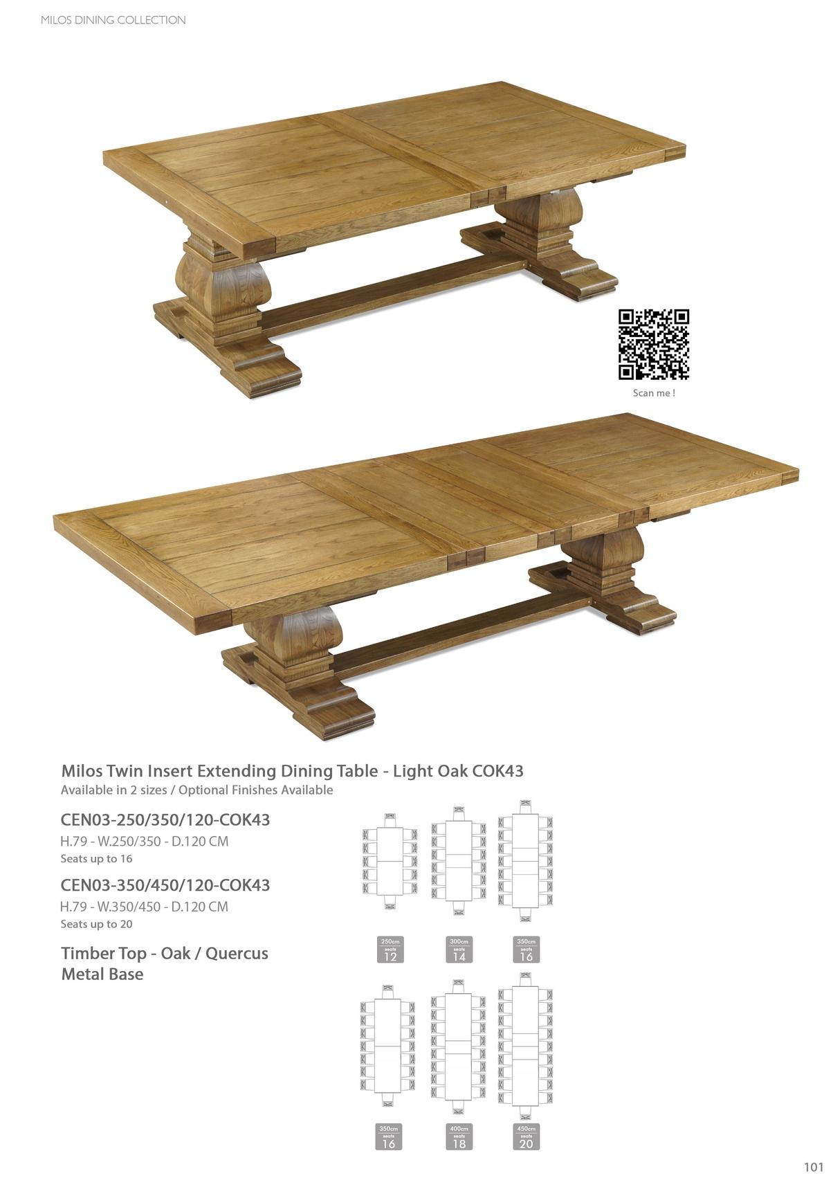 Milos Twin Insert Extending Dining Table - Light Oak COK43 Available in 2 Sizes / Optional Finishes Available