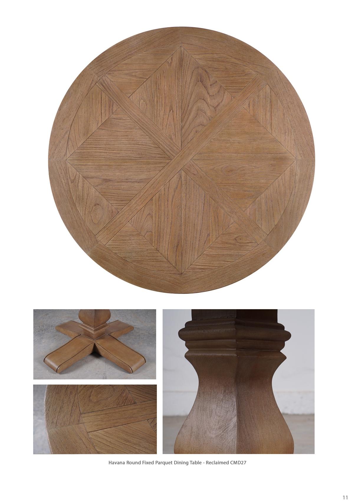 Havana Round Fixed Parquet Dining Table - Reclaimed CMD27