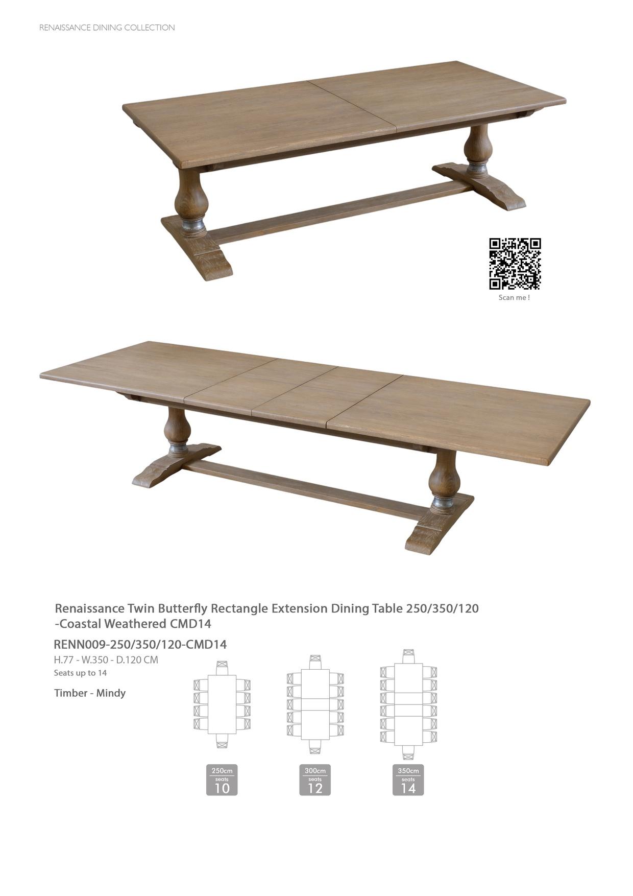 Renaissance Twin Butter y Rectangle Extension Dining Table 250/350/120