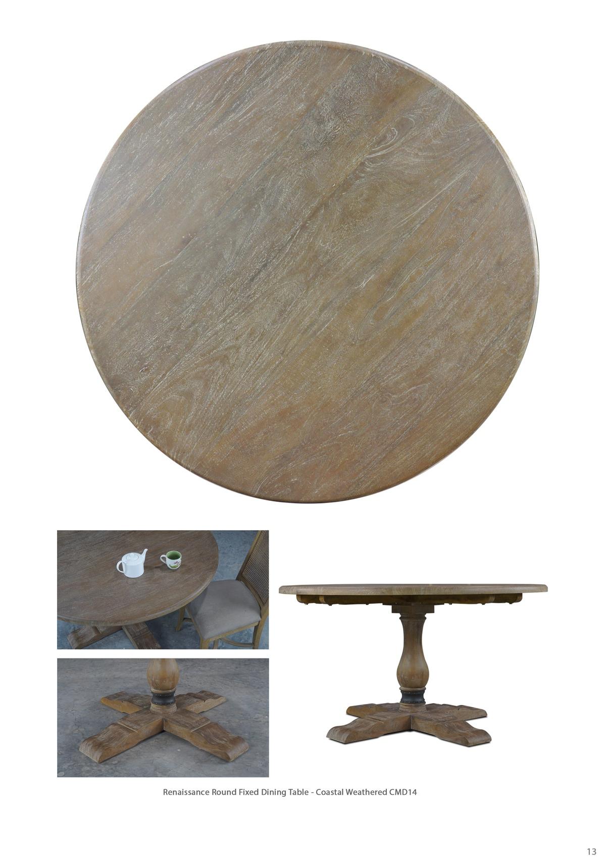 Renaissance Round Fixed Dining Table - Coastal Weathered CMD14