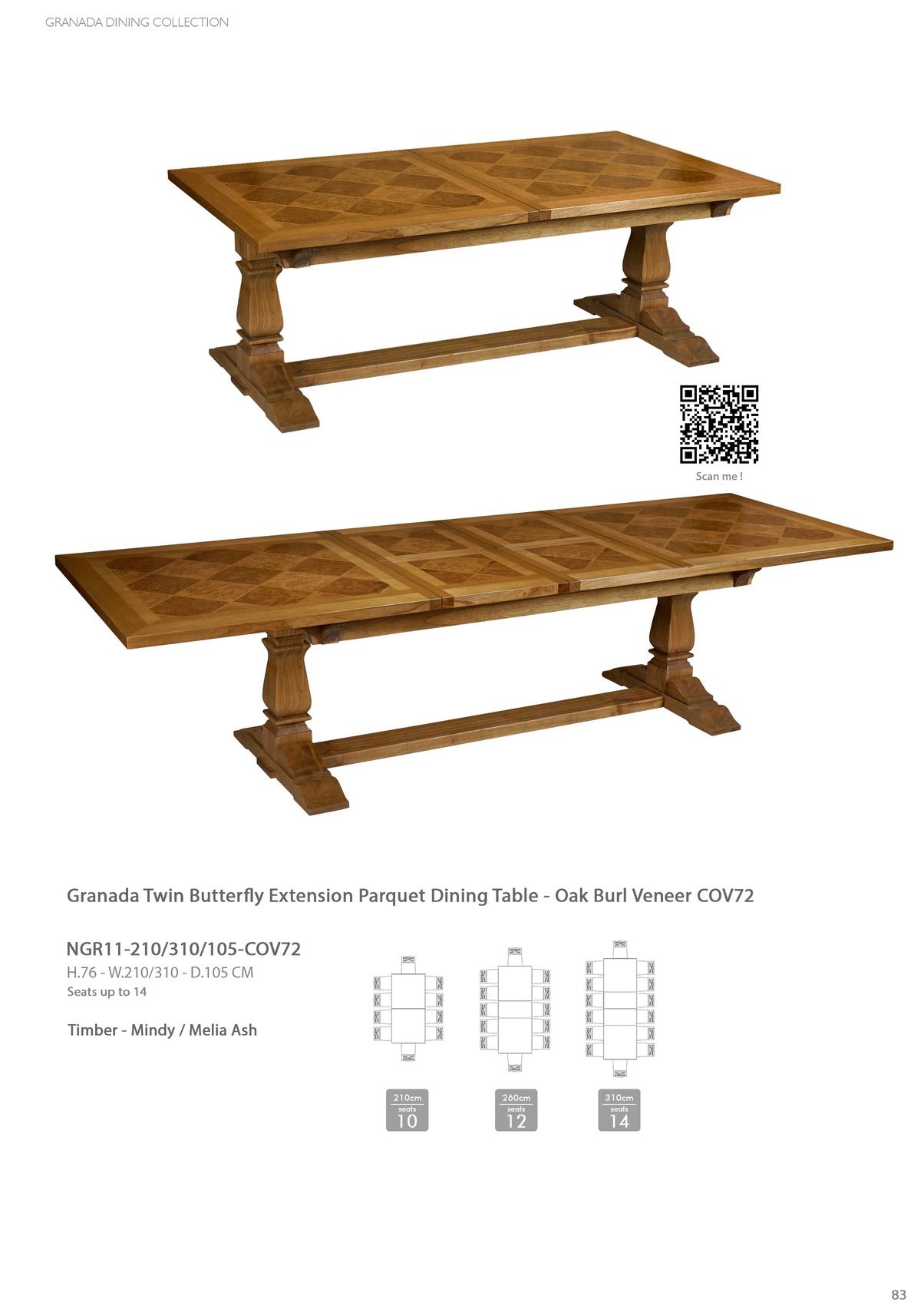 Granada Twin Butter y Extension Parquet Dining Table - Granada COV75