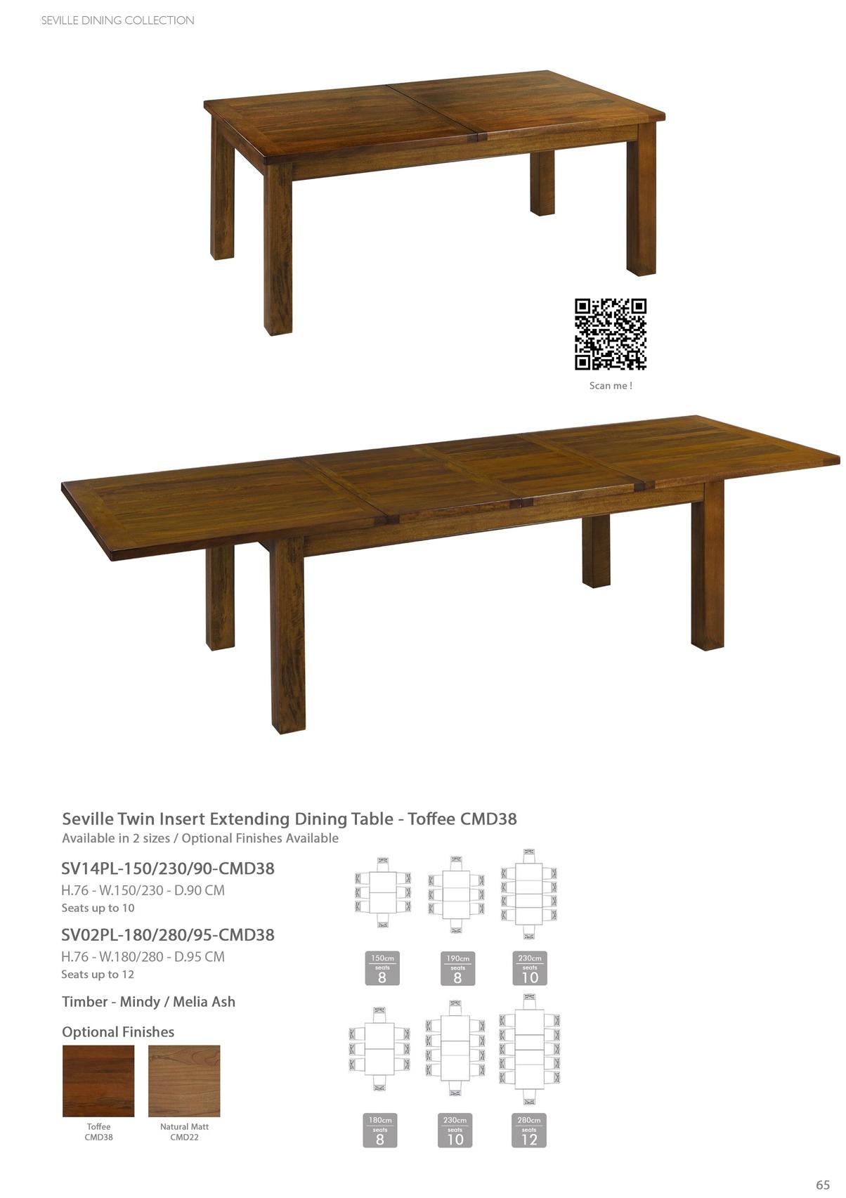Seville Twin Insert Extending Dining Table - Toffee CMD38 Available in 2 Sizes / Optional Finishes Available