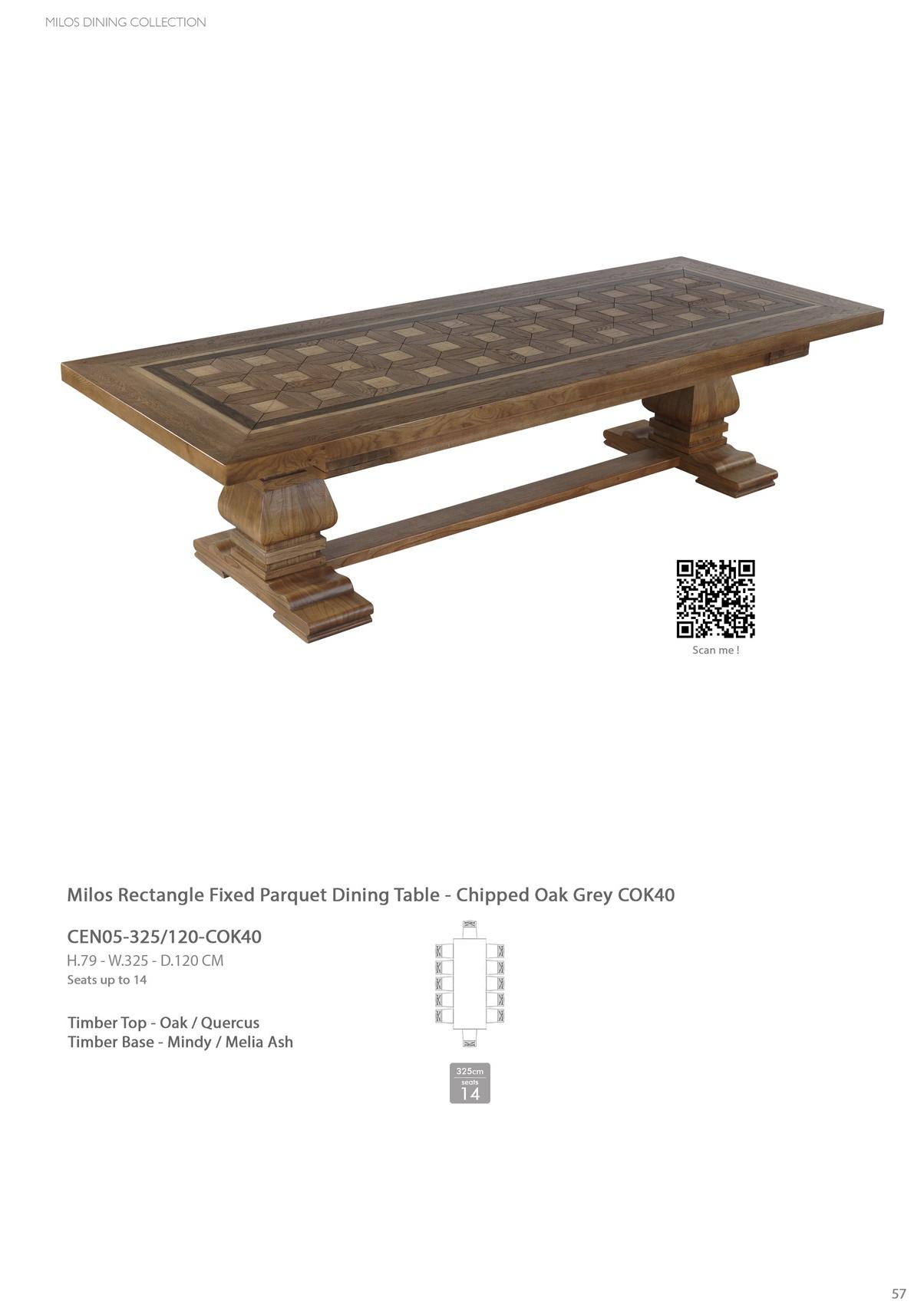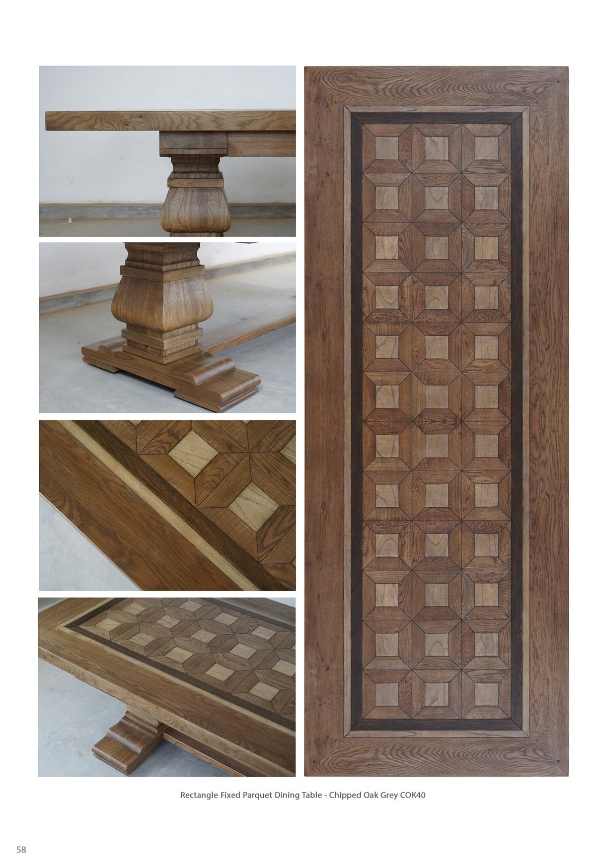 Milos Rectangle Fixed Parquet Dining Table - Chipped Oak Grey COK40