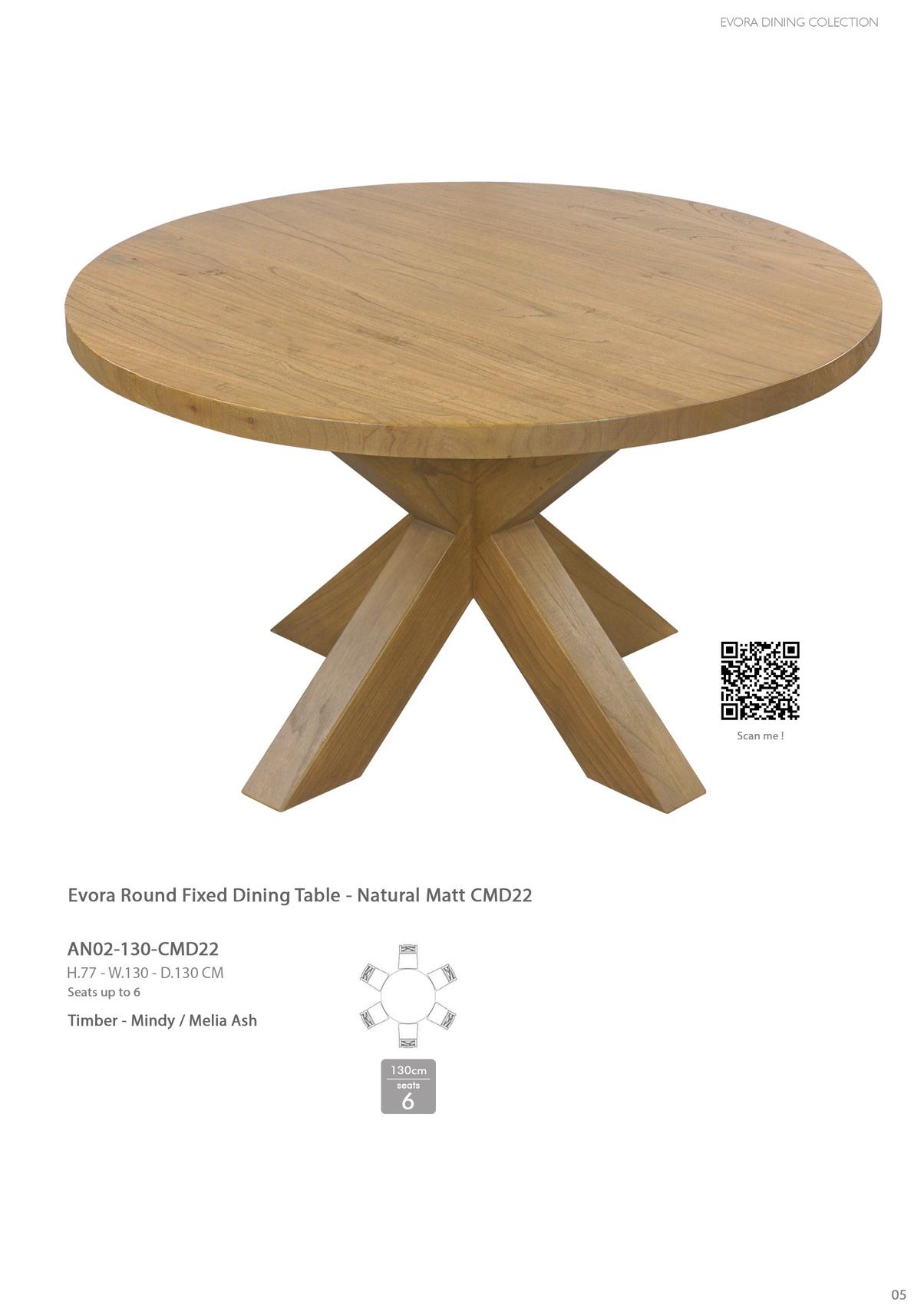 Evora Round Fixed Dining Table - Natural Matt CMD22
