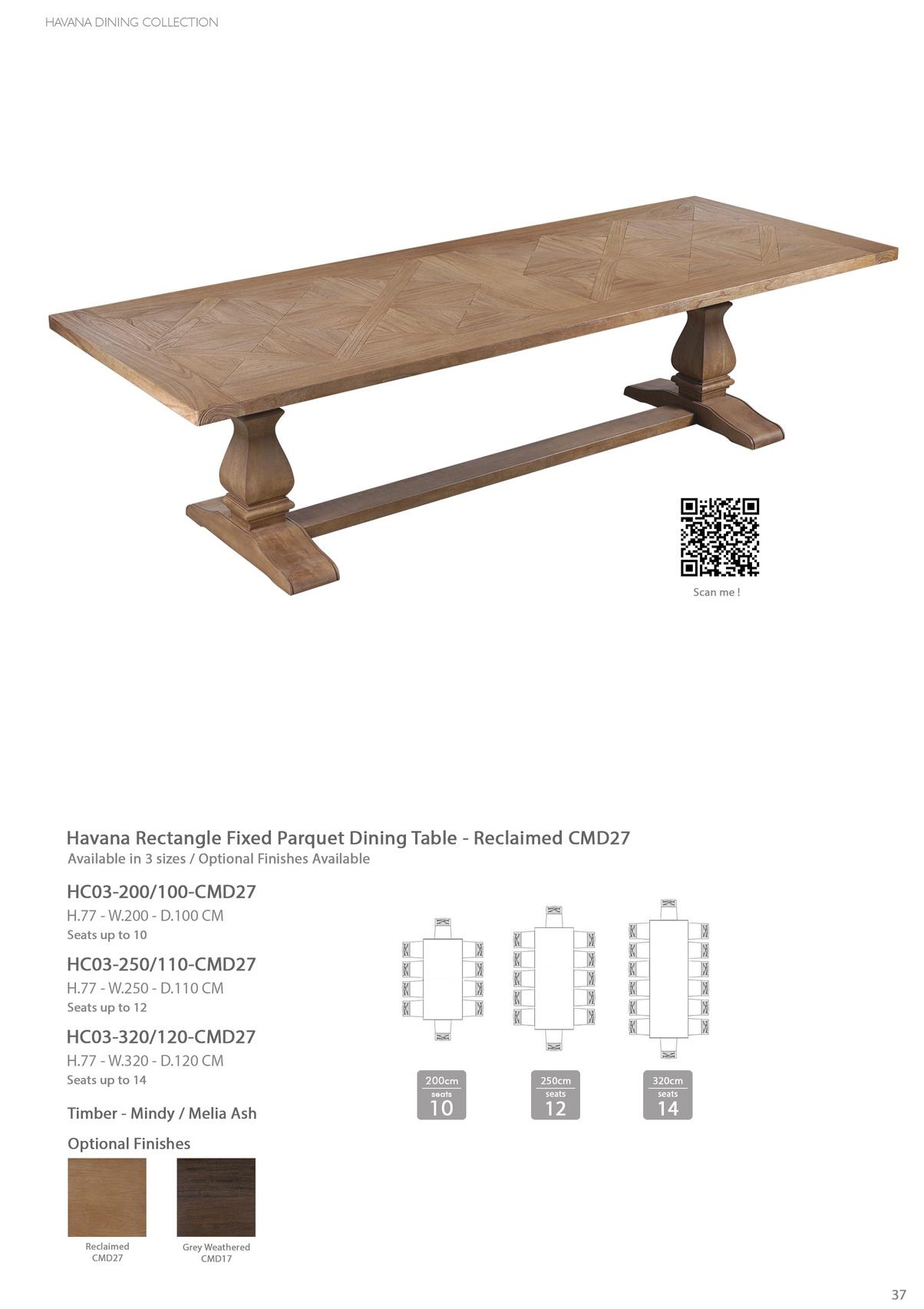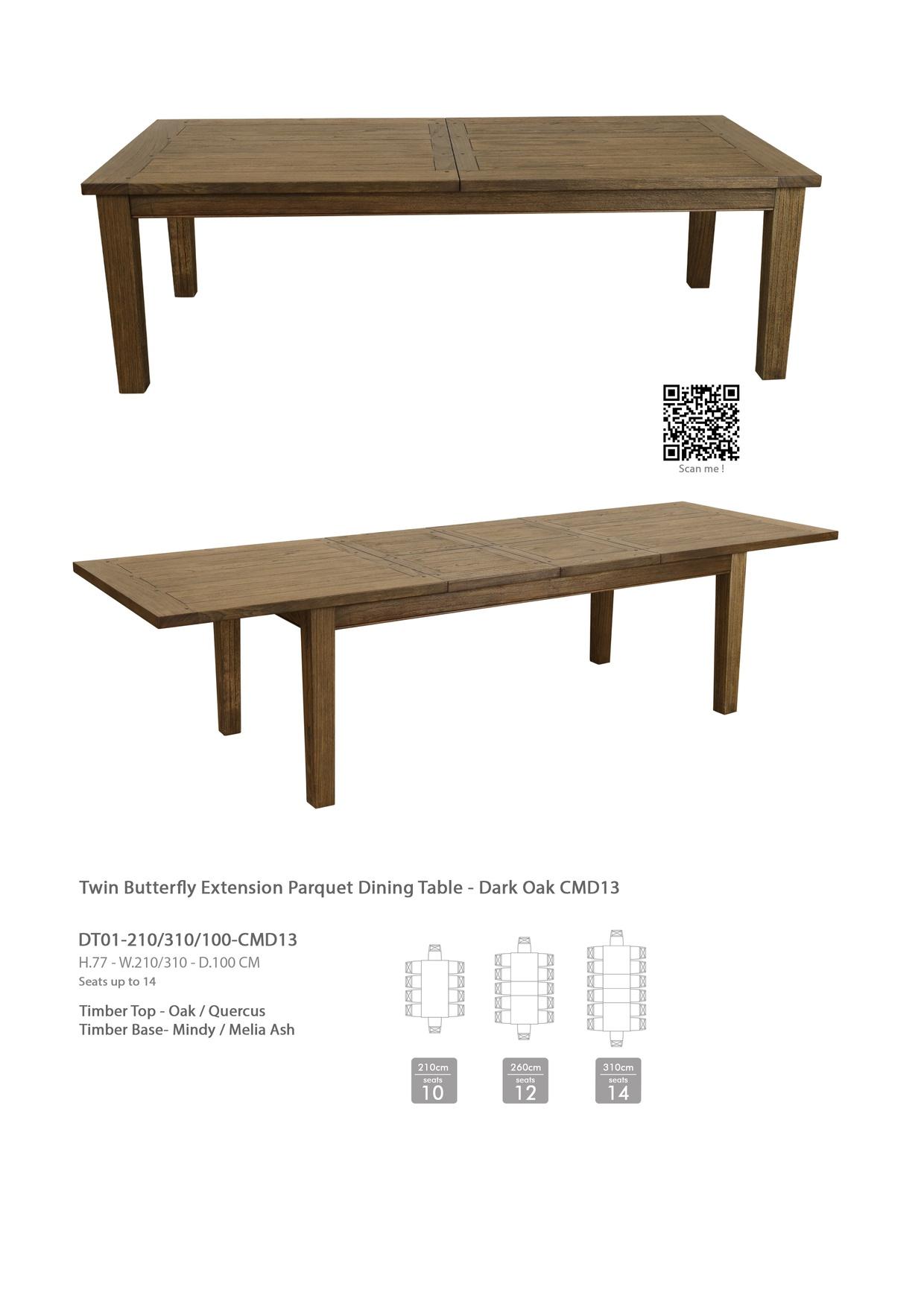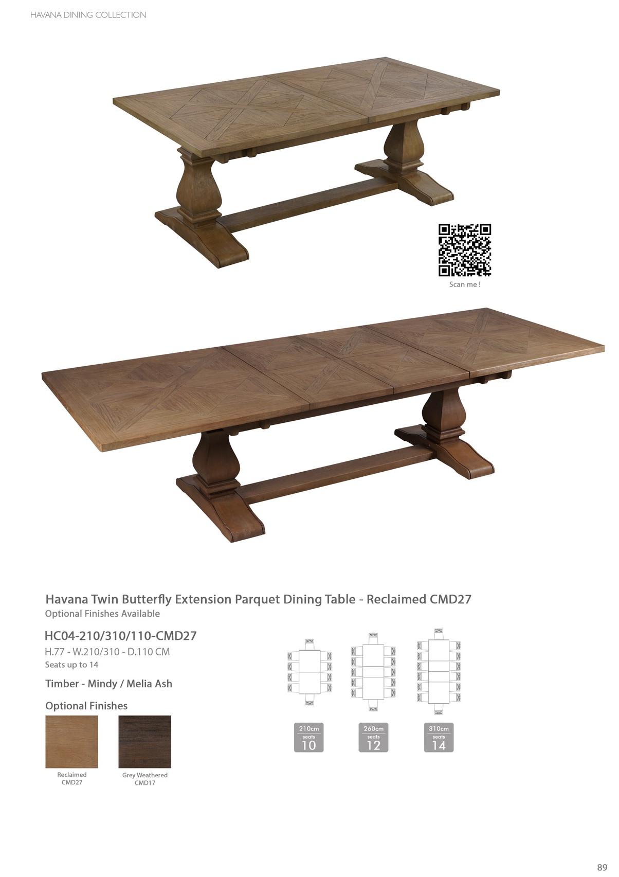 Havana Twin Butter y Extension Parquet Dining Table - Reclaimed CMD27 Optional Finishes Available