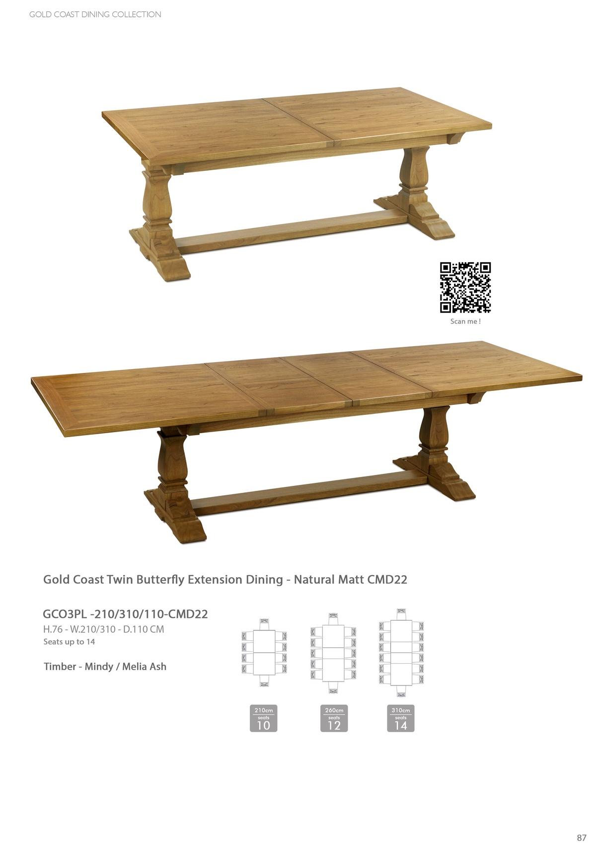 Gold Coast Twin Butter y Extension Parquet Dining Table - Rustic Melia Ash CMD30