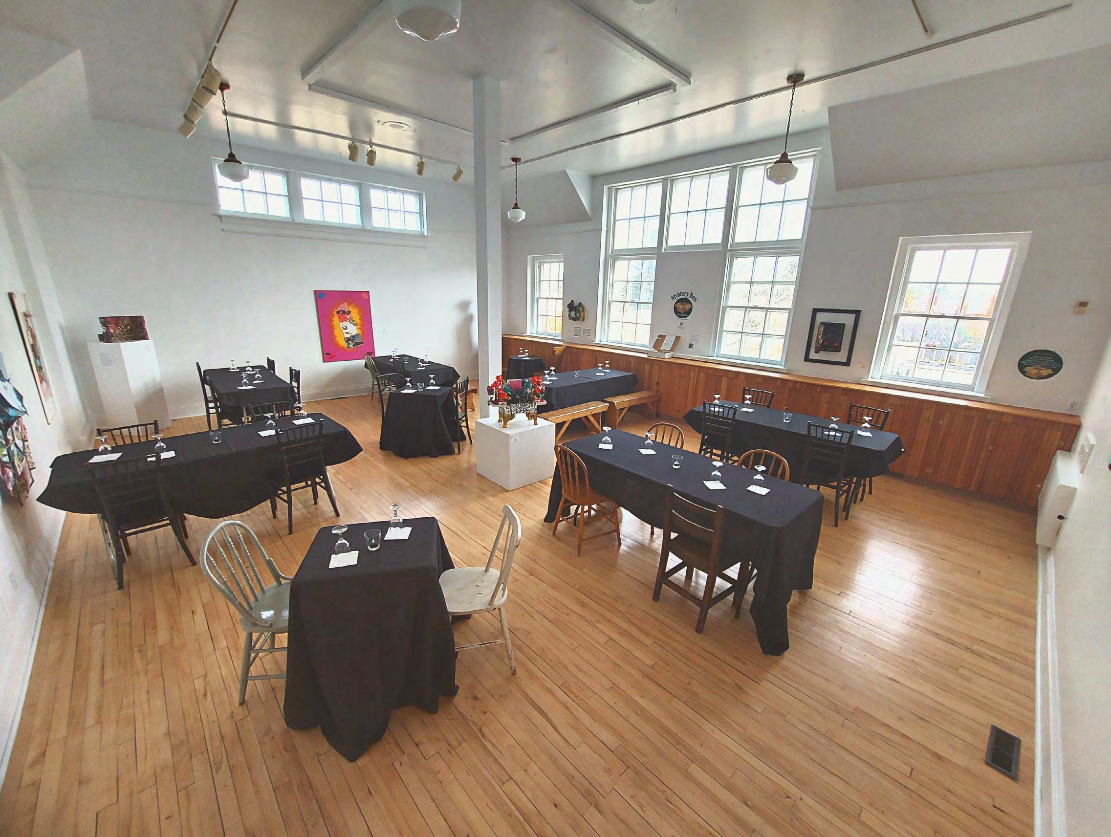 Our modern art gallery is located inside the 1925 Red Brick Schoolhouse. This space boasts the perfect setting for sleek, elegant affairs with hardwood floors, crisp white walls and plenty of natural lighting.
