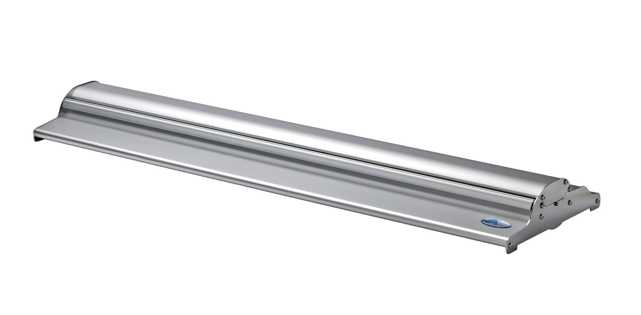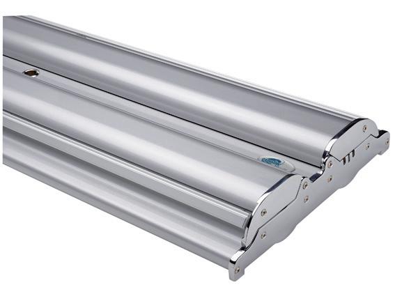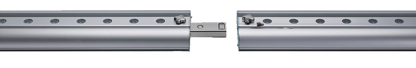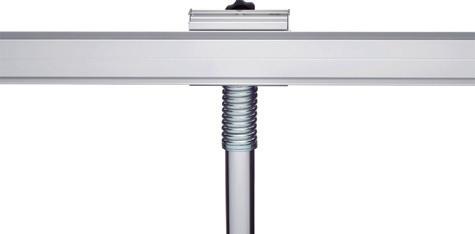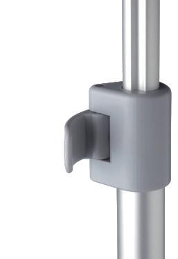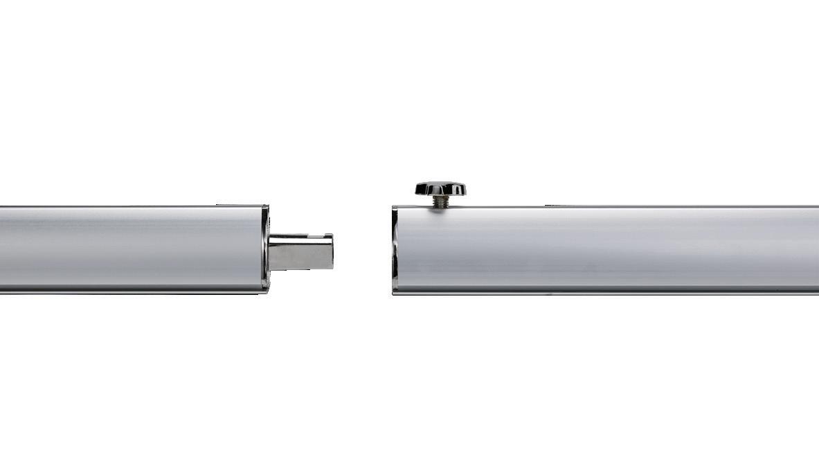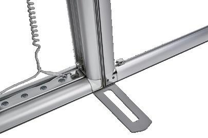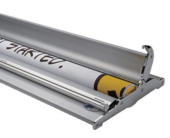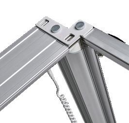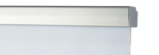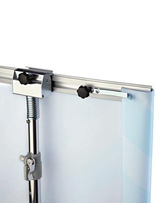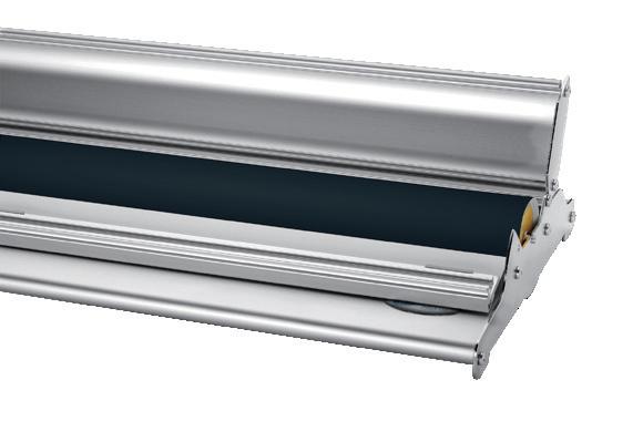 Stijlvol topprofiel met gepatenteerde vergrendelingsfunctie. Eindkapjes zijn standaard bij de Roll-Up Compact De telescopische buis vergrendelt in de gewenste hoogte.