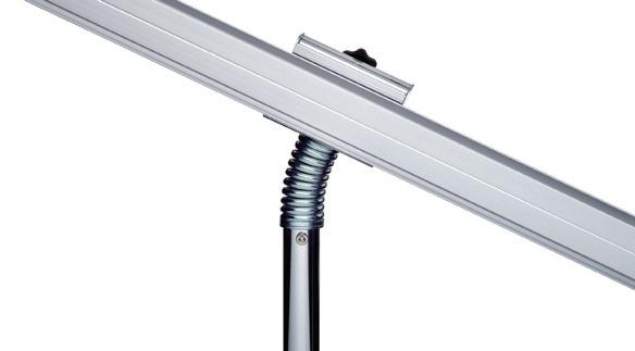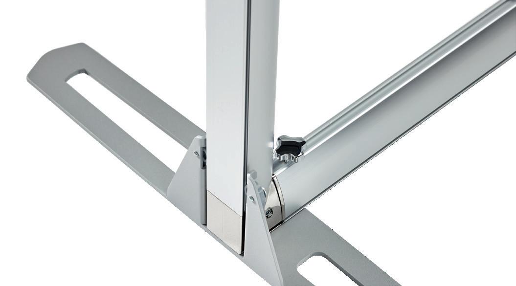 De inklapbare voet verzekert de functie en stabiliteit van het systeem. Het klikt vanzelf in de positie.