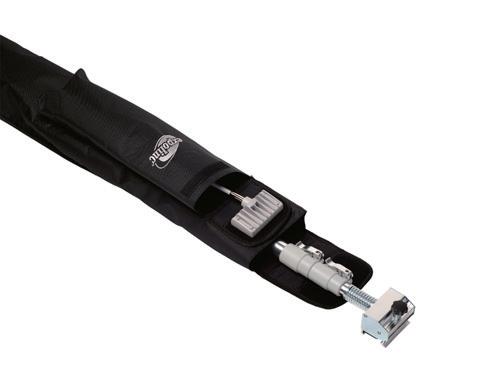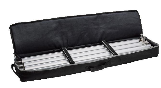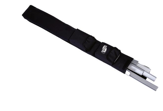 Pole System wordt vervoerd in een nylon draagtas met schouderband.