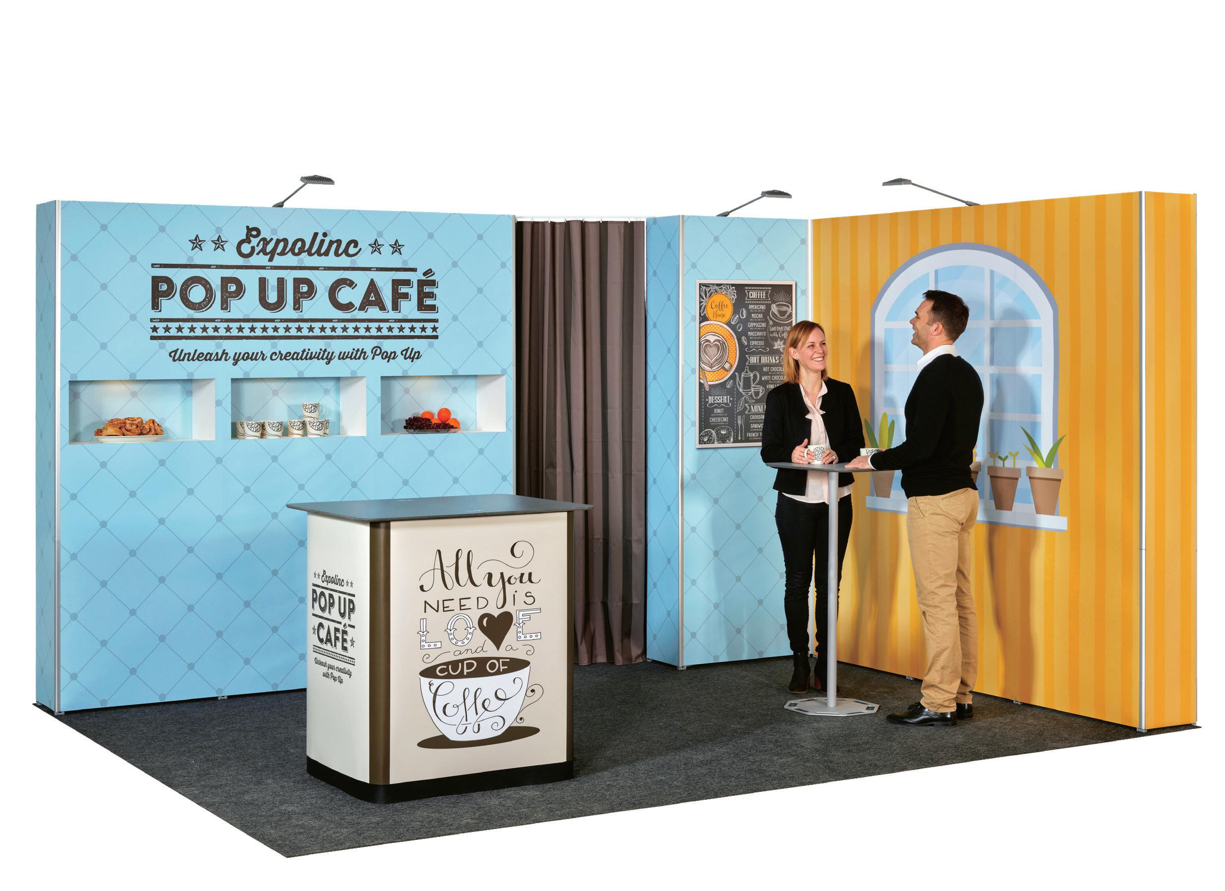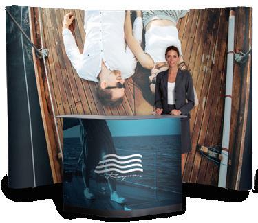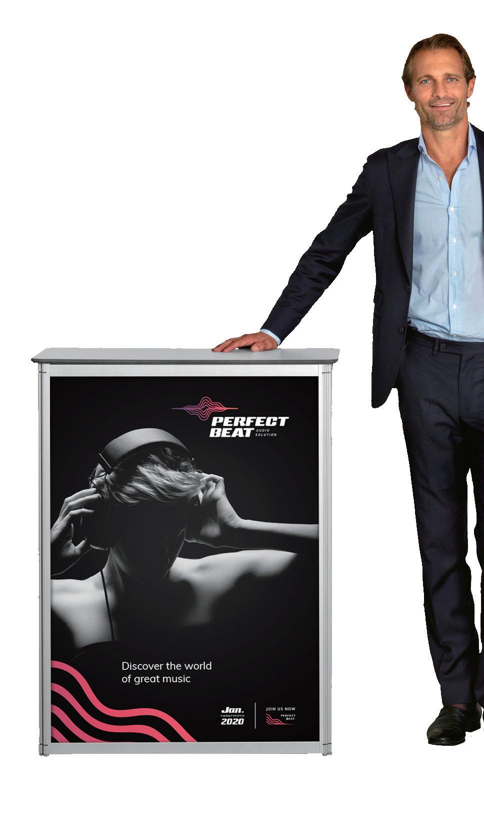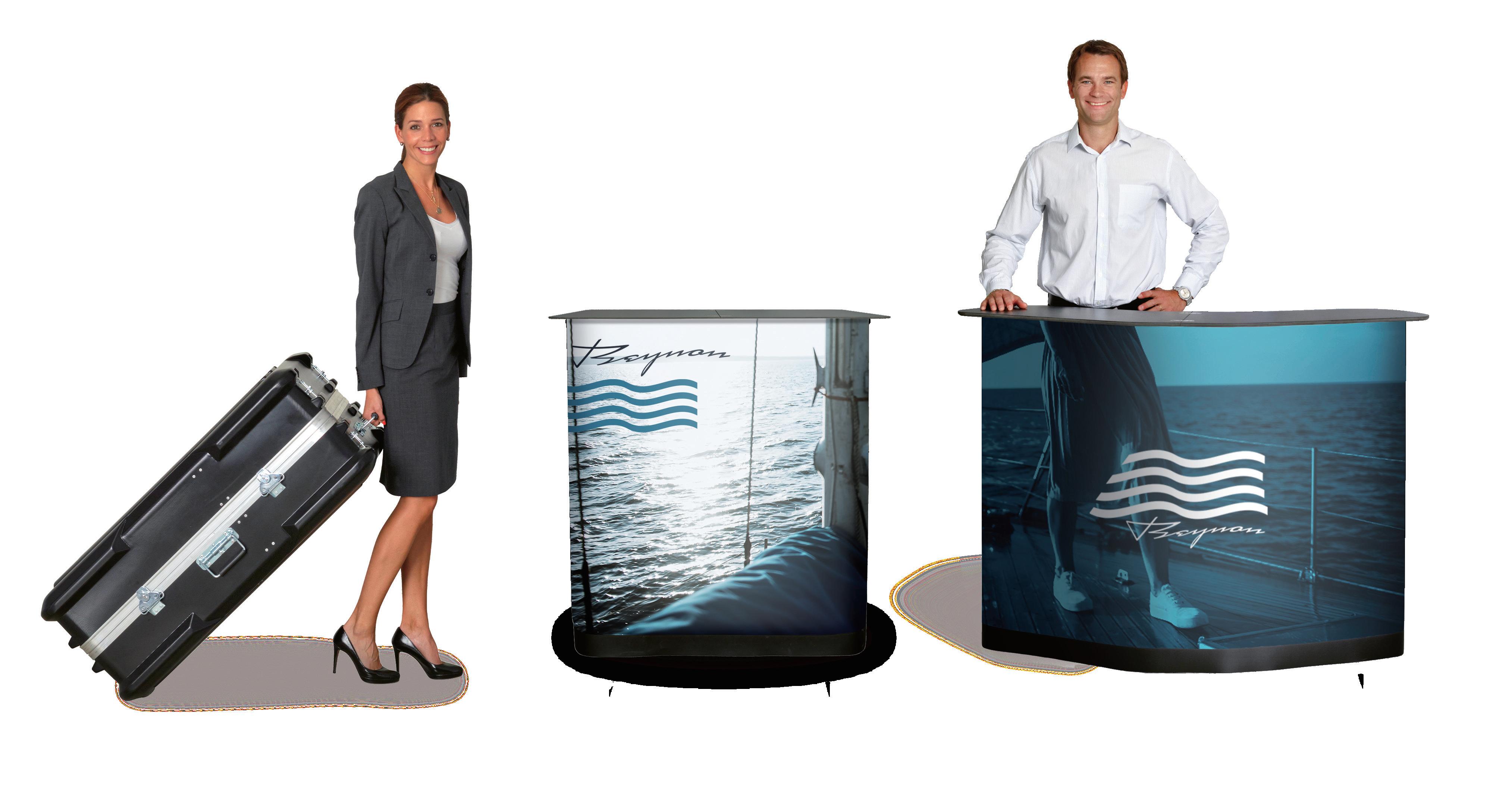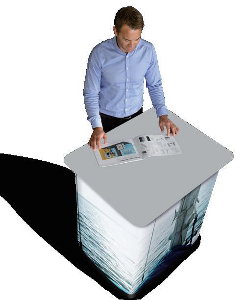 De Stand-Up Counter wordt een ontmoetingsplek tijdens een event of een perfecte plaats om een offerte of order te noteren. De Stand-Up counter is eenvoudig op te zetten, met een ultra stabiel ontwerp dat de maximale ruimte geeft aan je boodschap.