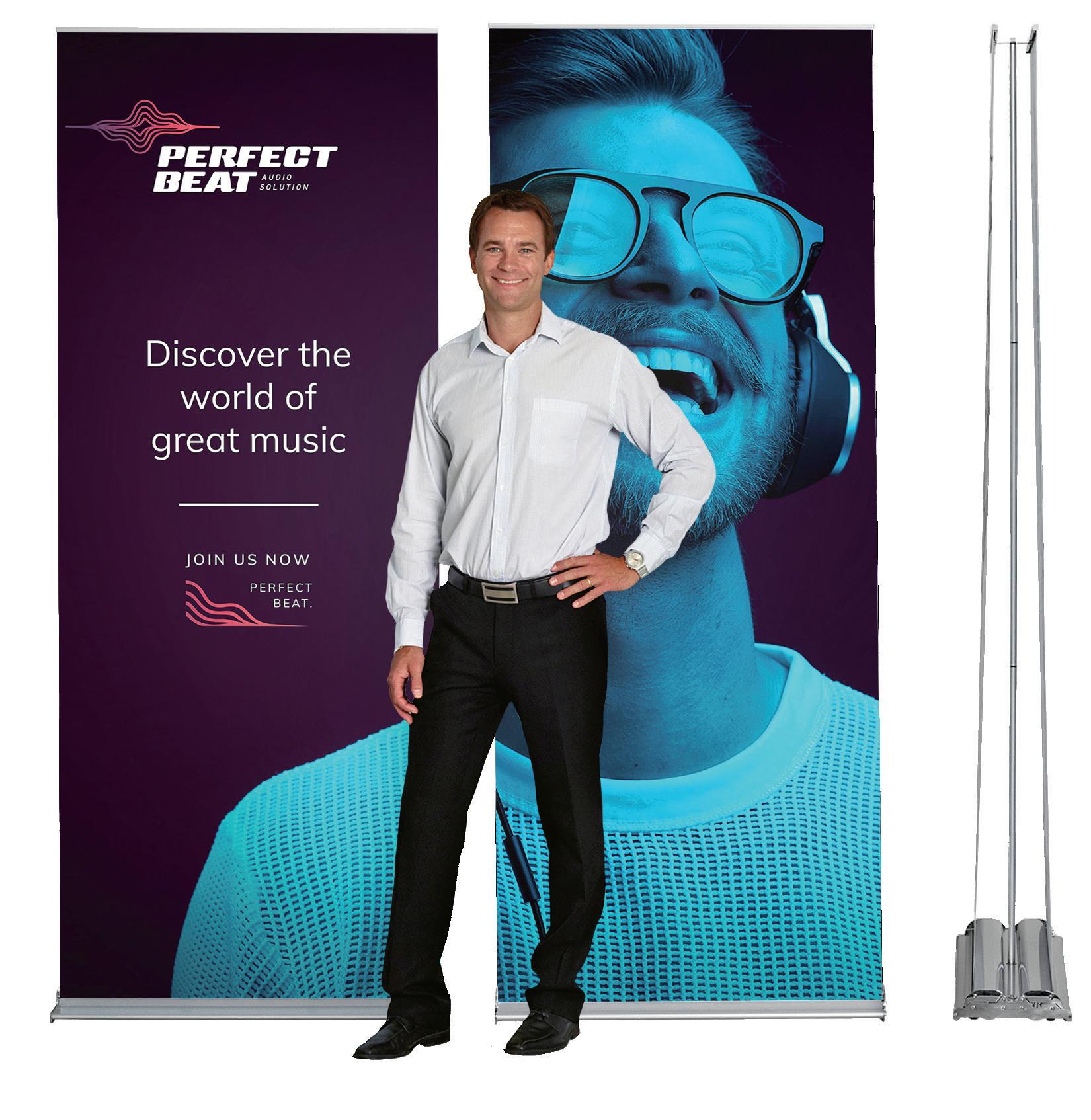 Het Pole System bied je de gelegenheid om opvallende oplossingen te creëren, vooral in combinatie met andere systemen. De paneelformaten zijn flexibel in hoogte en breedte en panelen kunnen aan beide zijden van de display worden geplaatst. Pole Systeem is binnen een minuut opgezet. Met een paar simpele bewegingen vouw je de voeten uit, trek je de telescopische buis uit tot de gewenste hoogte en plaats je 1 of 2 prints. Makkelijker kan niet.