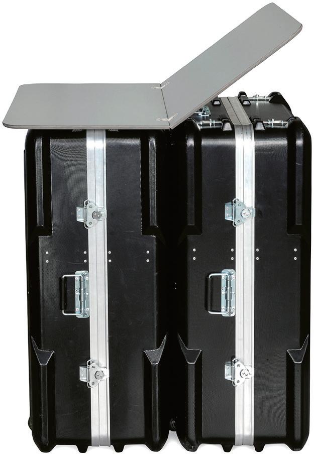 De Standard Case XL kan tot 3 buizen en 90 gebogen profielen verpakken. De koffer kan eenvoudig worden ingezet als counter.