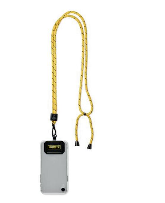 Plaats het pad eenvoudig tussen je telefoon en hoesje. Personaliseer het stoffen pad met je logo en laat de metalen buckle bedrukken of graveren. Stel het koord samen in twee kleuren en kies een zilveren, zwarte of PMS-haak en accessoires.