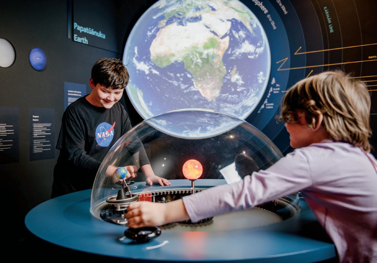 Canterbury Plains, and Ly elton Harbour; sparking conversations about geography, geology, and the environment. Interactive displays at the top station further support curriculum-based learning with insights into the region’s volcanic past.
