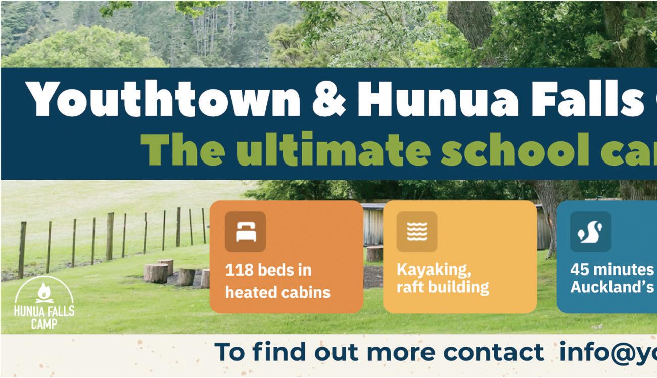 With 82 bunk beds in seven cabins, and extra mattresses, Kokako can sleep 100 campers, and there is a large commercial kitchen and dining hall for selfcatering or caterers. There’s also plenty of peaceful outdoor space surrounded by native bush, with the Hunua Falls just a few minutes’ walk away, giving your students multiple options for bush walks.