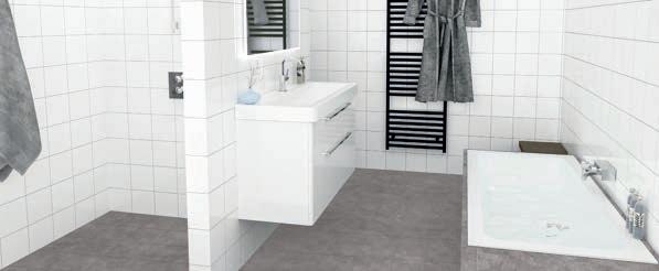 Veelzijdige vloertegel die zowel met glanzend als mat combineert. Dankzij de kleur minder gevoelig voor zichtbare vervuiling. Kan doorgelegd worden in doucheruimte.