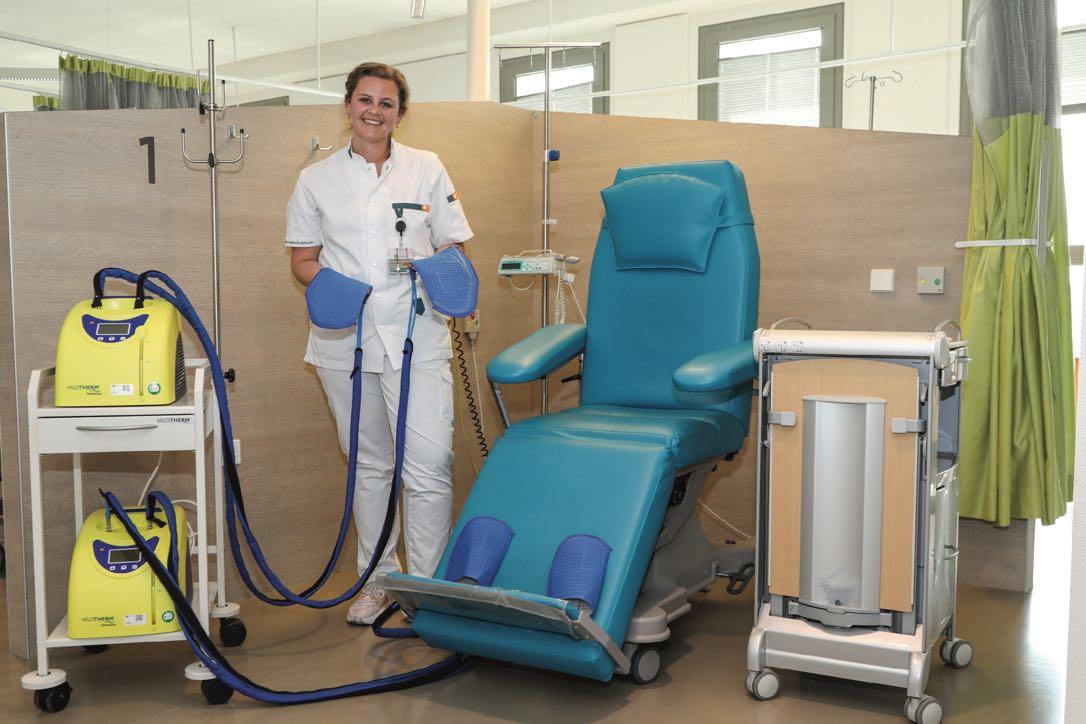 het effect van hand-voetkoeling middels de Hilotherm, waar door dit niet een standaard onderdeel van de behandeling is.” Elsbeth volgt de master Innovatie in Zorg en Welzijn aan de Ho geschool Utrecht en heeft literatuuronderzoek gedaan naar de effecten van hand-voetkoeling.