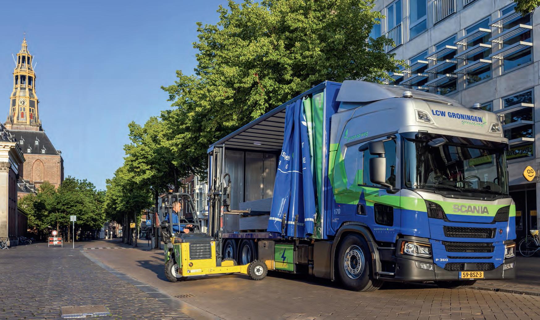 Wat betekent verduurzaming voor jullie in een wereld die voor het grootste deel uit diesel aangedreven vrachtwagens bestaat? ,,Zoals Bonne net al zei, we omarmen de diesel en die elektrische vrachtwagen, zo is het. Scania ontwikkelt zich als betrouwbaar merk voortdurend, de diesel van nu is een heel andere auto dan de diesel van 30 jaar terug. Iedereen weet dat fossiel over enkele decennia niet meer de norm is. Het is de kunst daar tijdig in mee te gaan, te zorgen dat je bent voorbereid. Daarom hebben we Drachten een paar jaar geleden volledig vernieuwd en doen we dat de komende twee jaar in Berlikum ook. Inmiddels liggen hier zonnepanelen op dak, de komende tijd vernieuwen we het front van ons pand en komen er nieuwe deuren in; daarna vernieuwen we de werkplaats.”