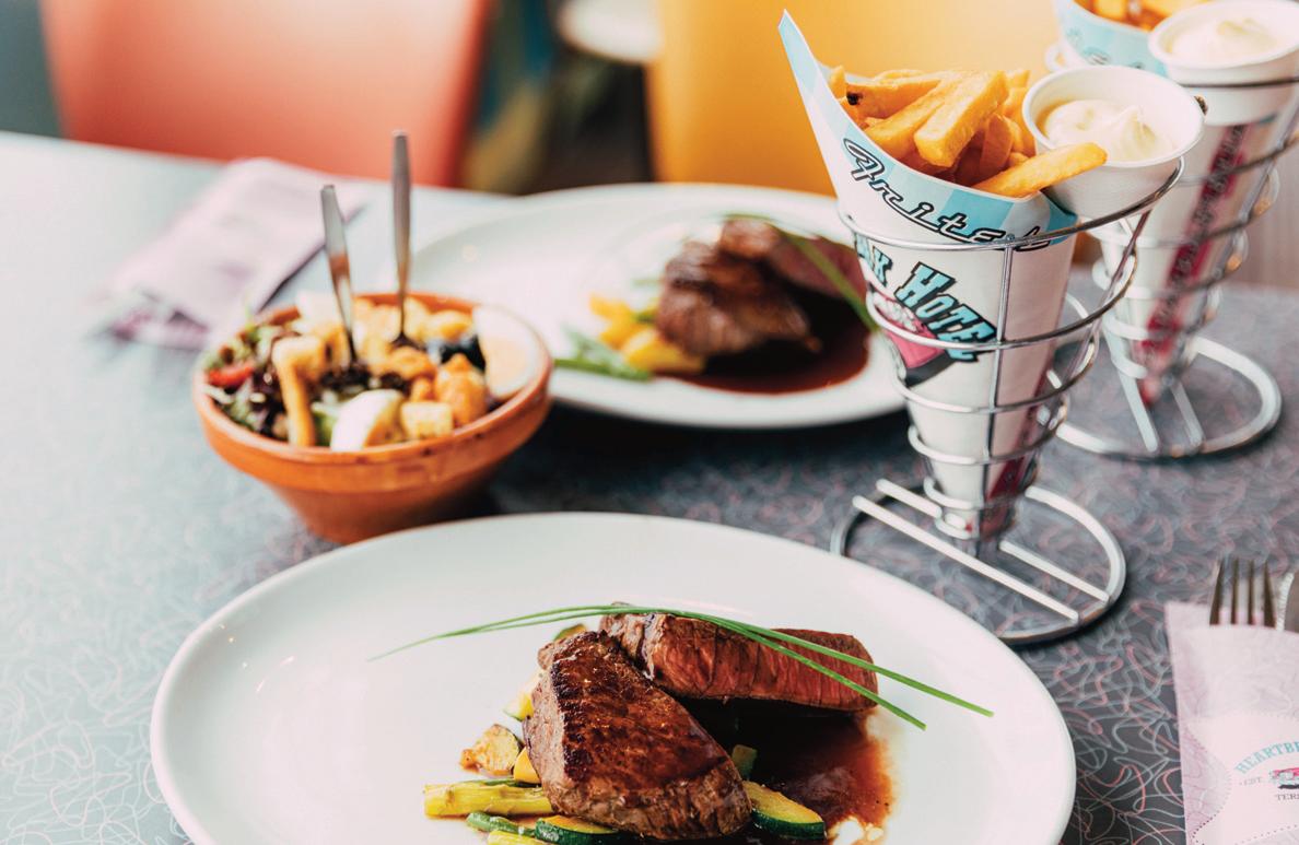 „Het publiek dat we aantrekken is door het thema gevarieerd. Jong en oud weet Heartbreak Hotel te vinden. Mensen van het eiland, maar ook ver daarbuiten. Vaak krijgen we van de gasten terug dat ze aangenaam verrast zijn door de totaalbeleving. De menukaart heeft voor elk wat wils. Natuurlijk zijn de Amerikaanse burgers niet van de kaart weg te denken, maar er is meer. Met zorg bereidde zeebaars en biefstuk bijvoorbeeld”, zegt Cedric. Cedric weet wat goed eten is. „Ik ben chef-kok van